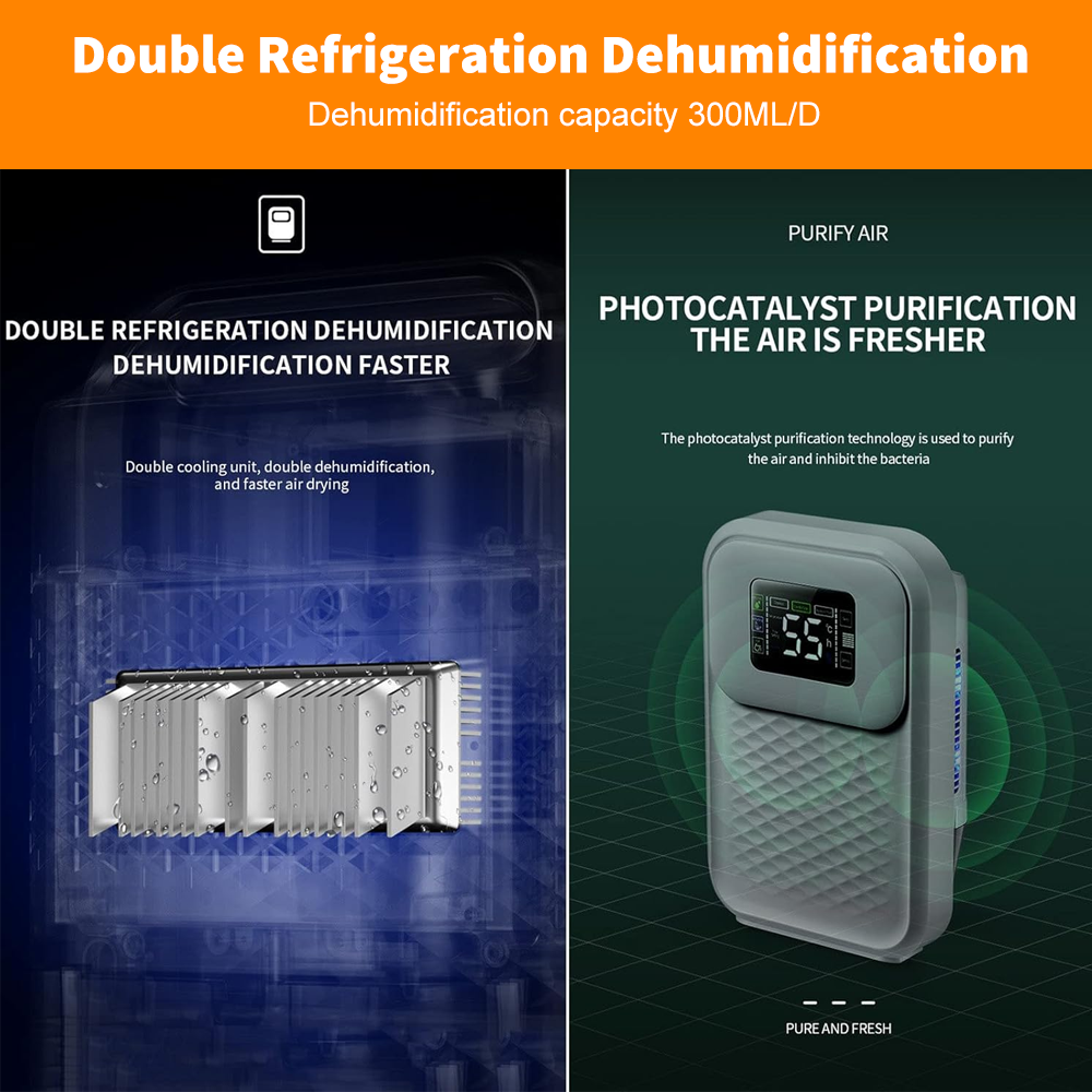 2.2L Large Dehumidifier Portable Quiet Home Air Dryer for Mould Moisture Damp