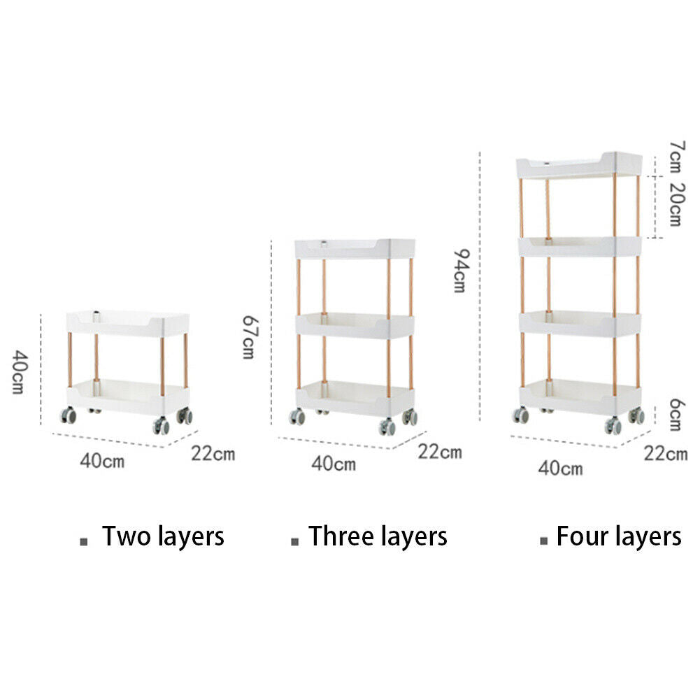 2/3/4 Tier Kitchen Food Storage Trolley Vegetable Cart Rack Shelf Bathroom Caddy