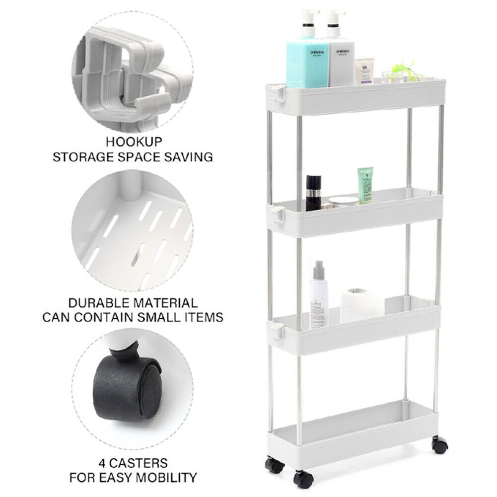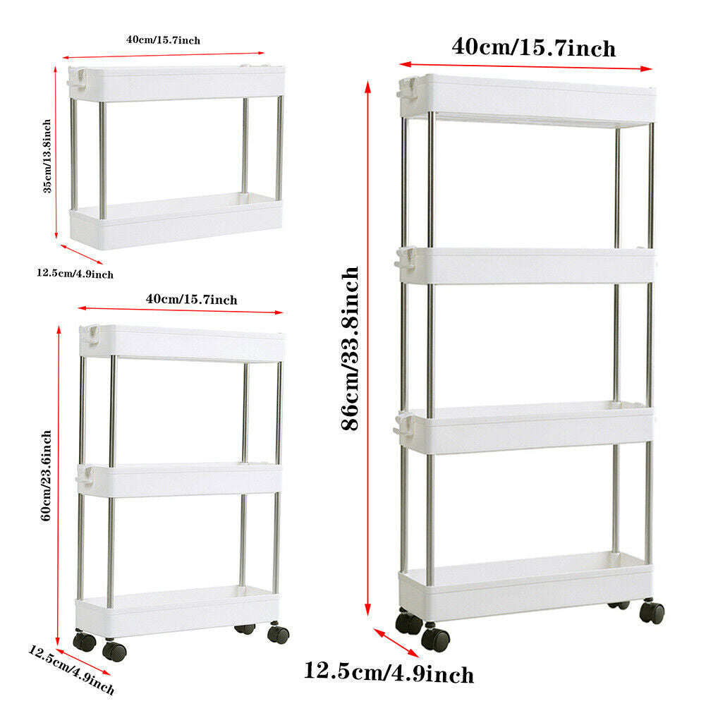 2/3/4 Tier Slim Slide Out Kitchen Trolley Rack Holder Storage Shelf on Wheels UK