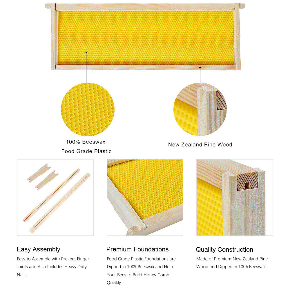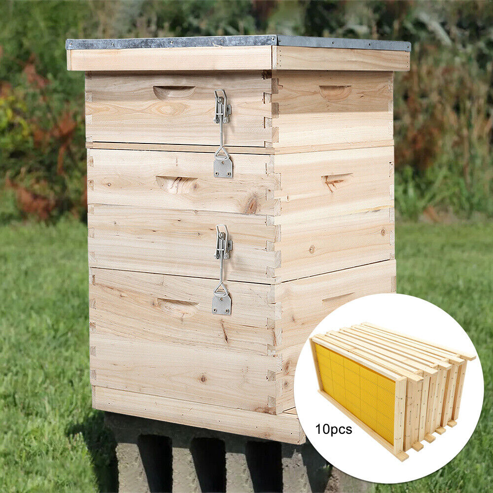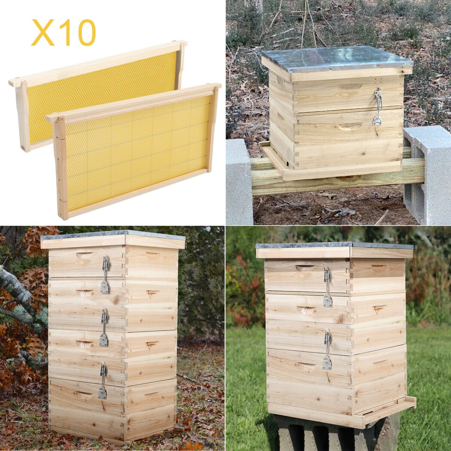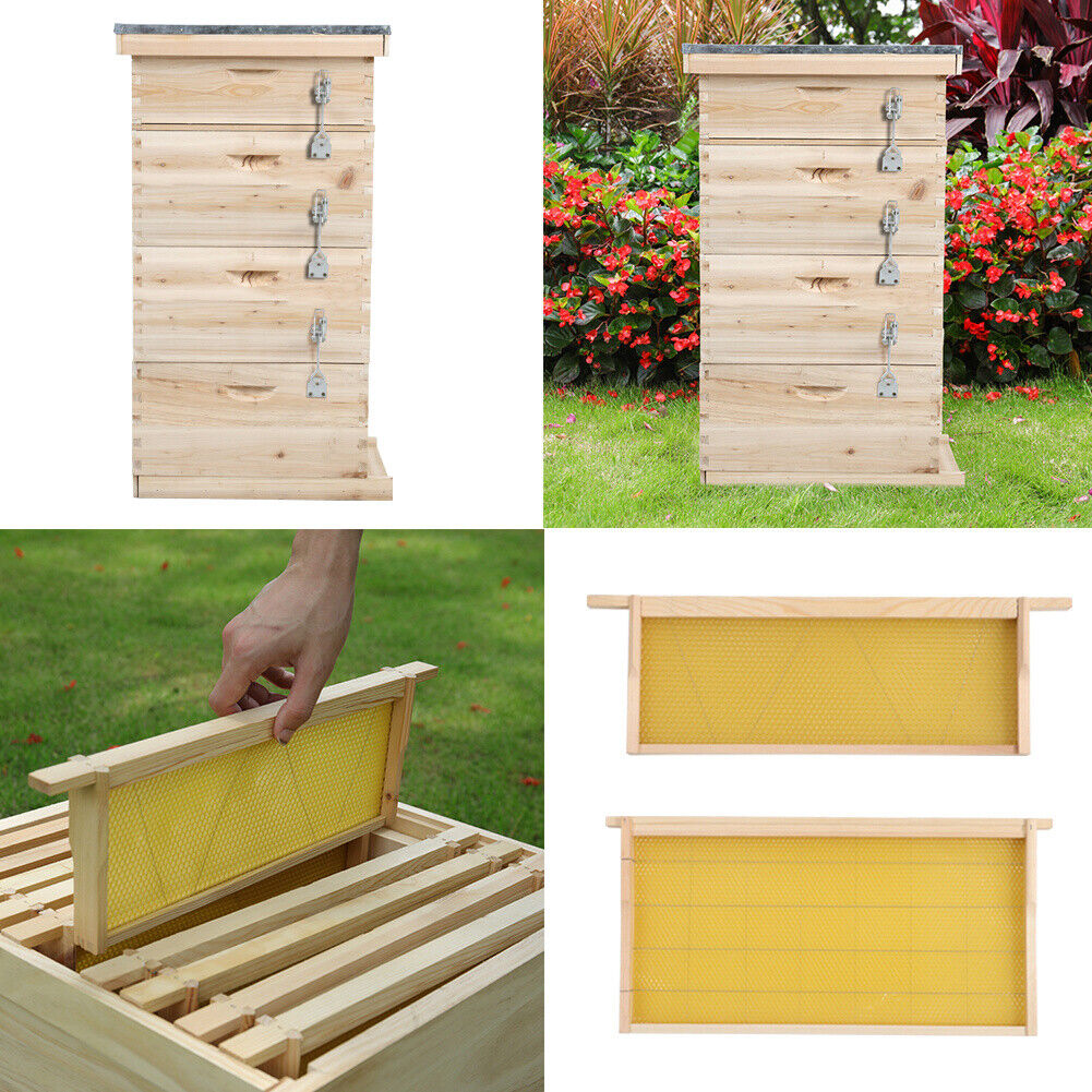 2/3/4Tier Langstroth Beehive Wax Foundation Sheet Frame Wood Bee Hive Beekeeping
