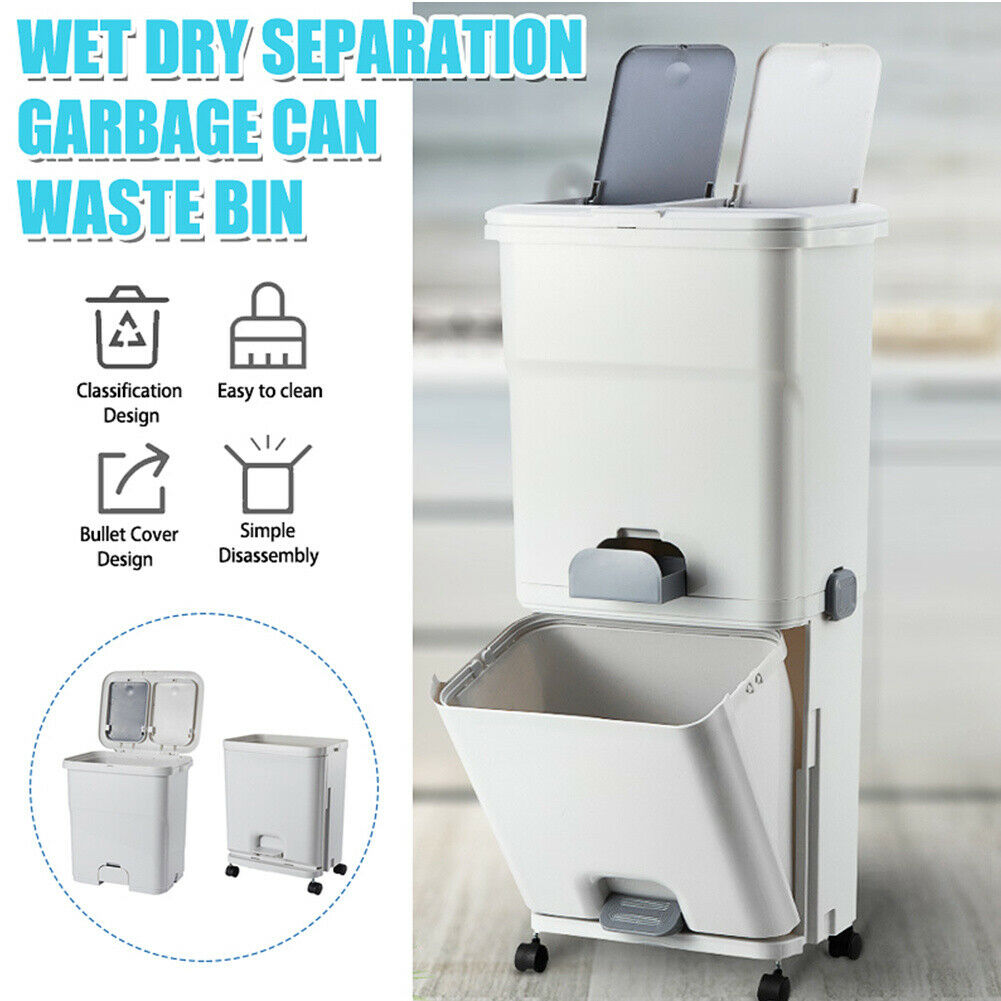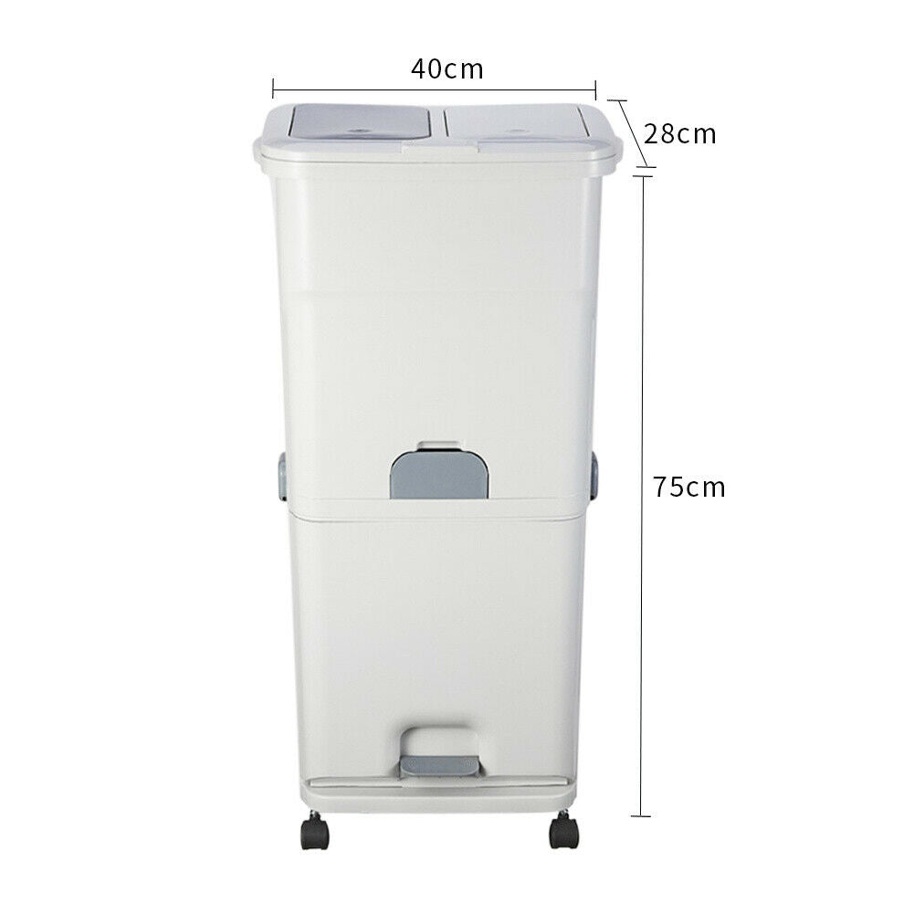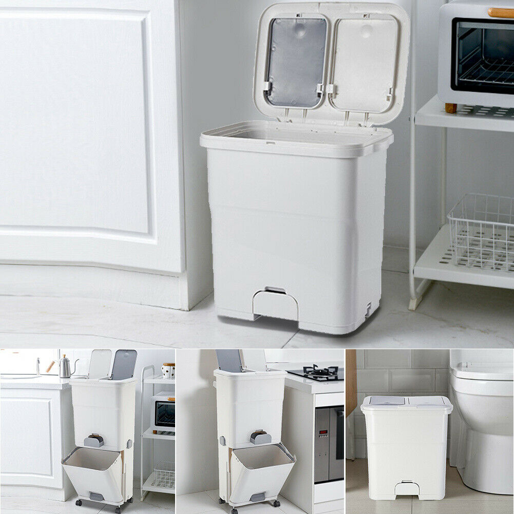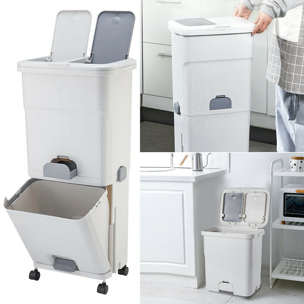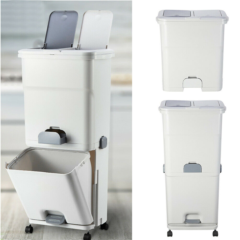 2/3 Compartment Kitchen Recycling Waste Bin Dustbin Trash Bin Rolling