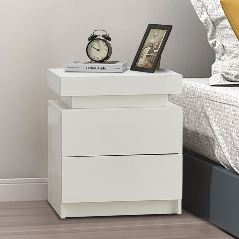 2/3 Drawers High Gloss Front Bedside Table Cabinet LED Nightstand Black/White