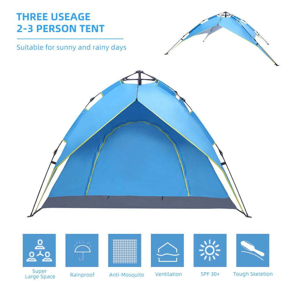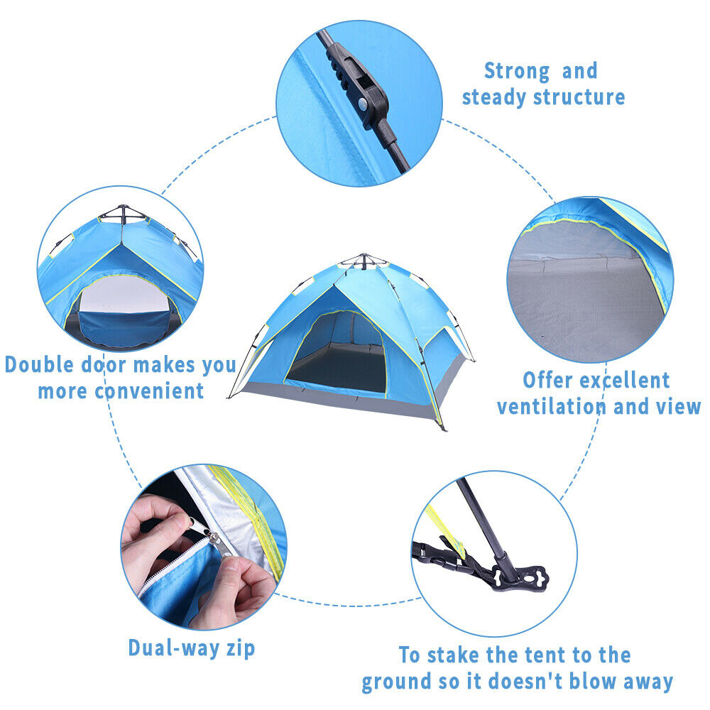 2-3 Man Person Pop-Up Tent Camping Automatic Double Layer Festival Fishing Beach