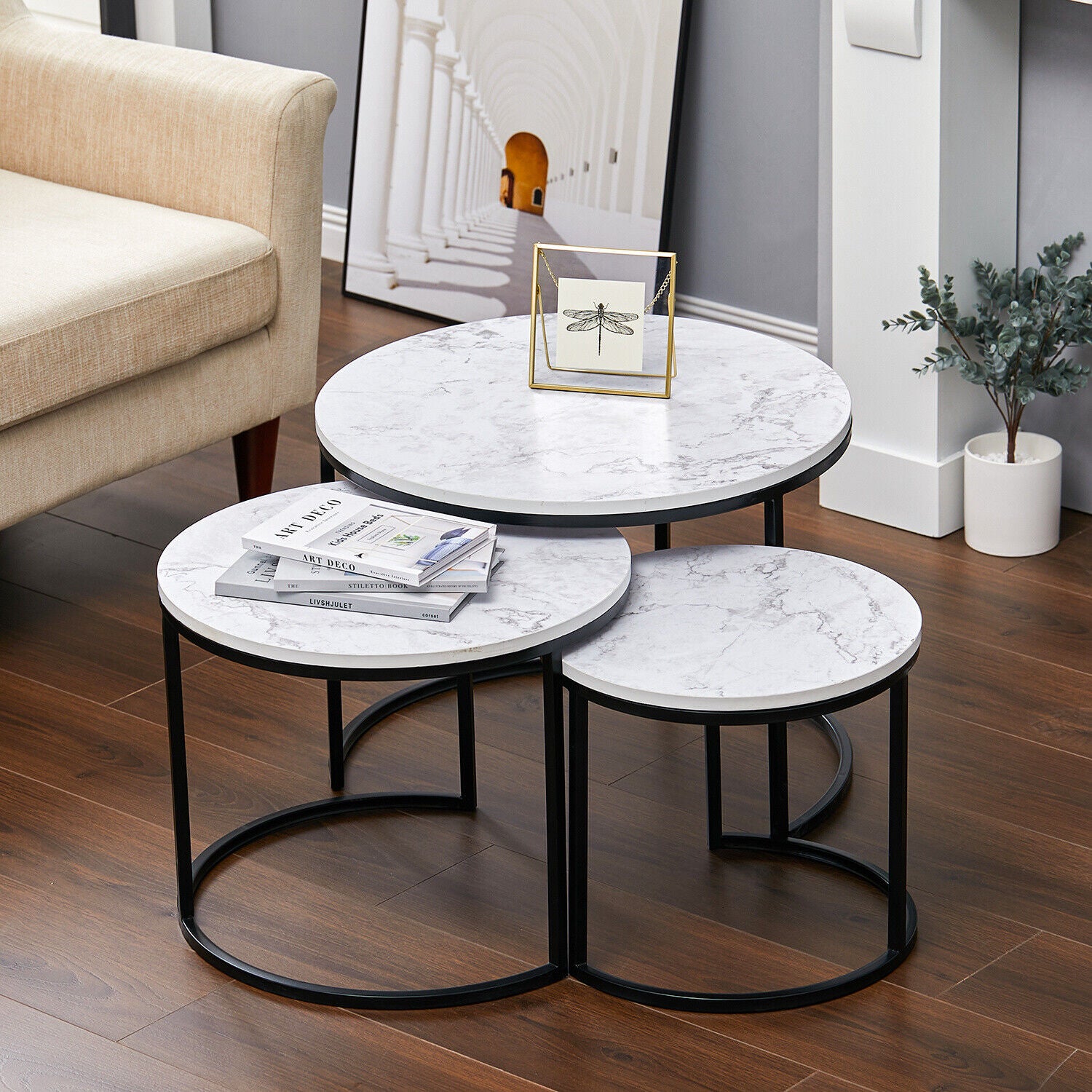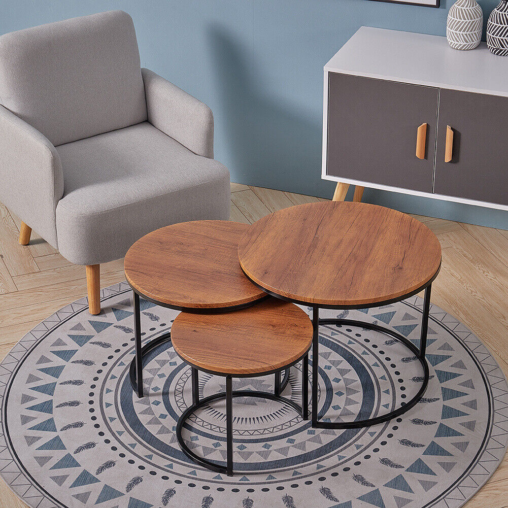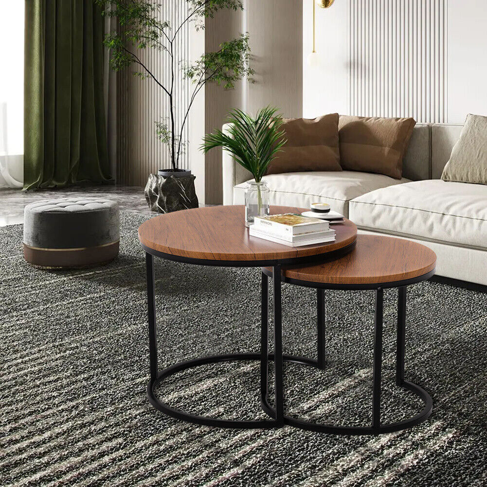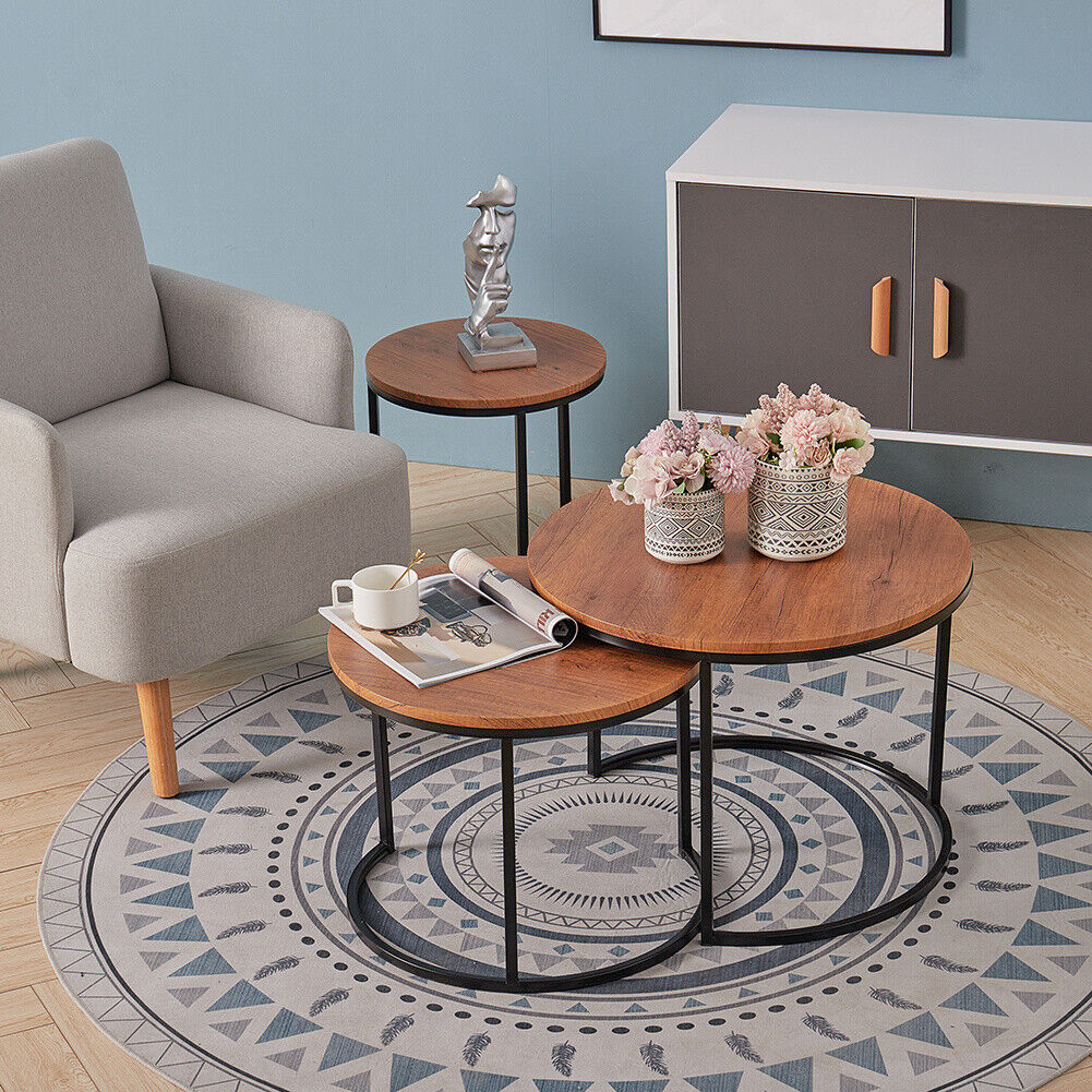 2/3 Nesting Tables Round Nest of Table Set Metal Frame Rustic Wood Tabletop Unit