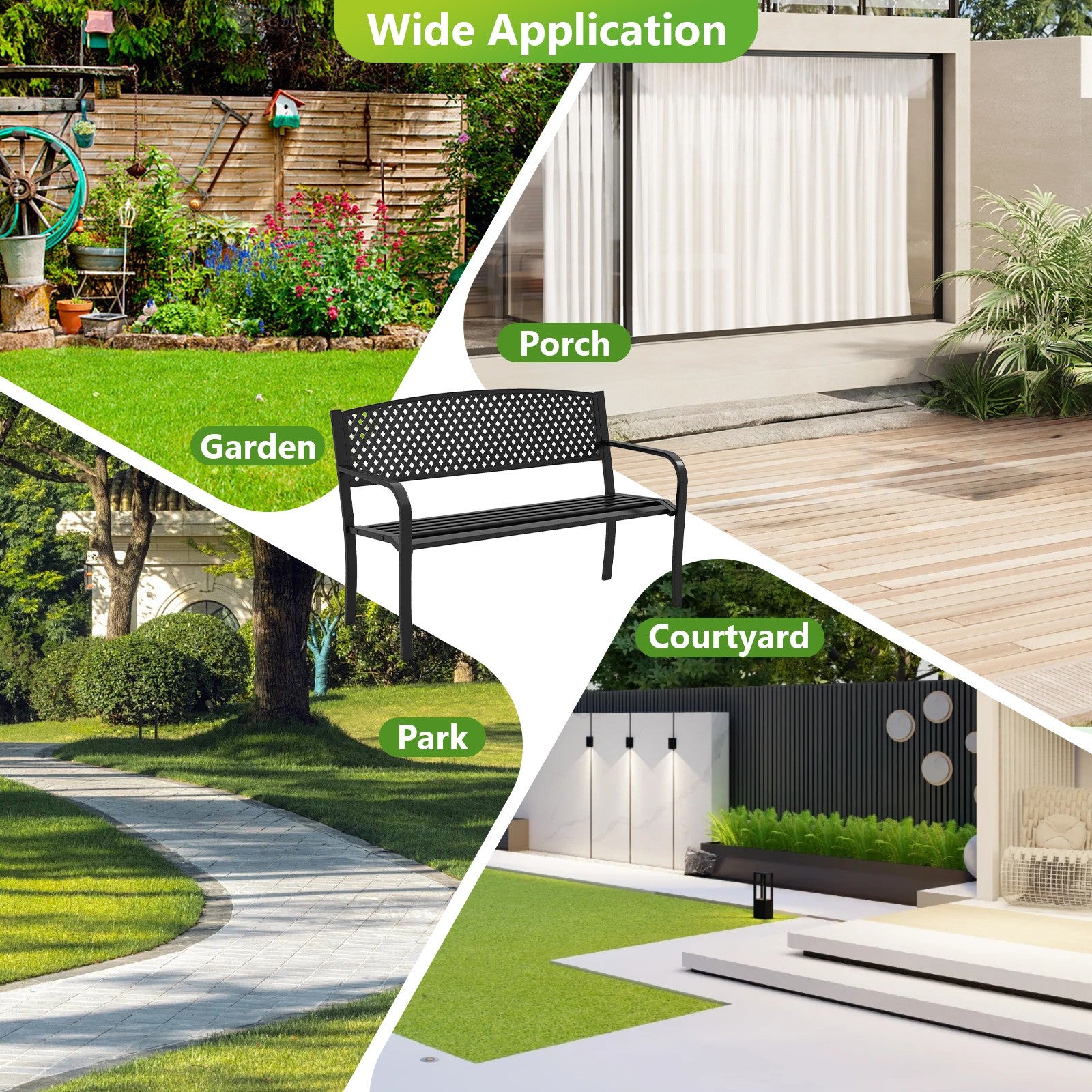 2-3-Person Patio Bench 127CM Garden Bench with Armrests Black