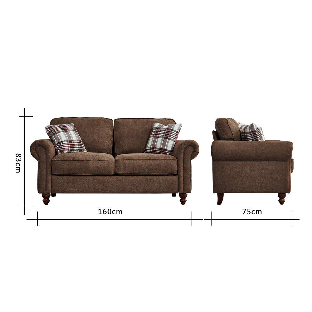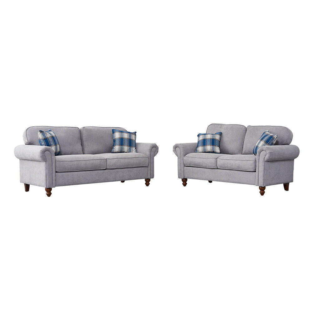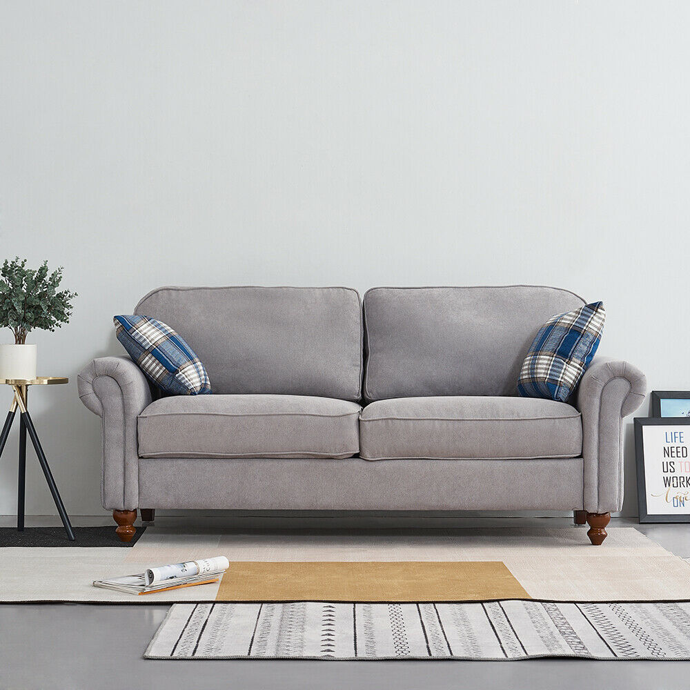 2, 3 Seater Grey Linen Fabric Sofa Armchair Lounger with 2 Pillows Living Room