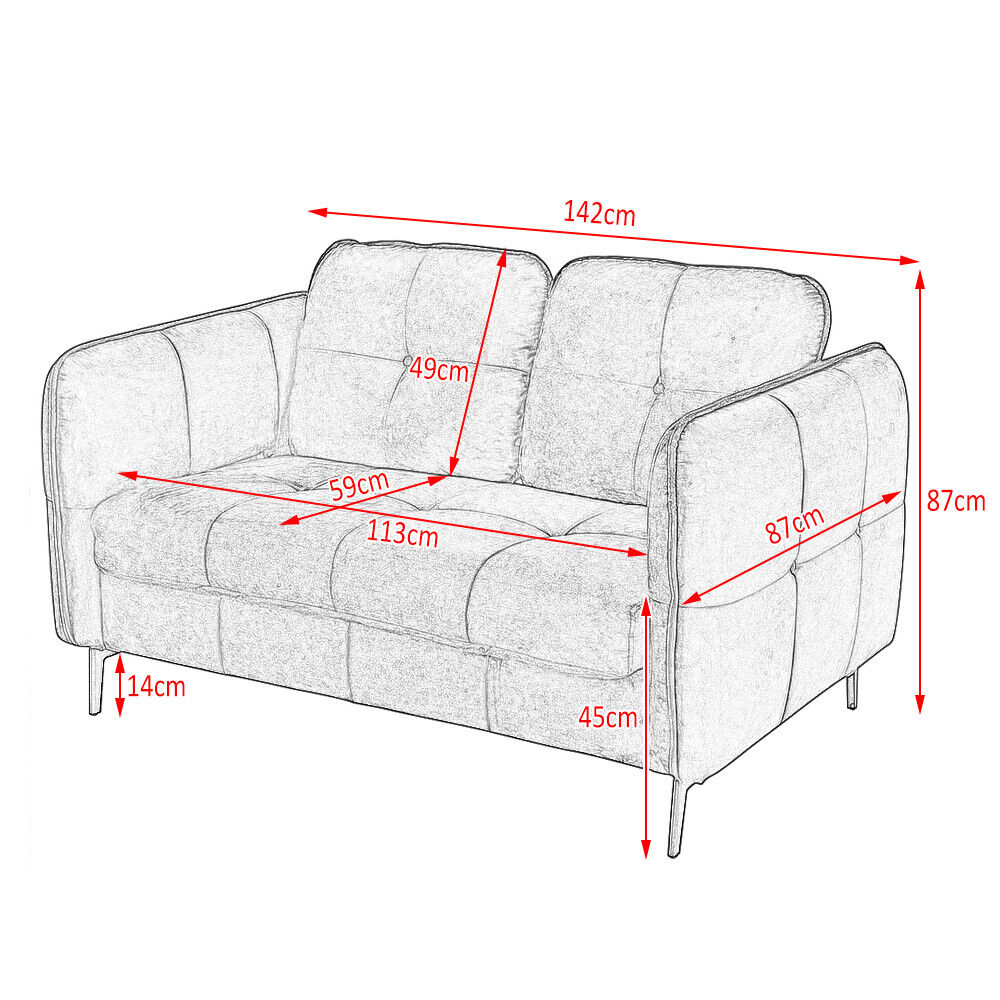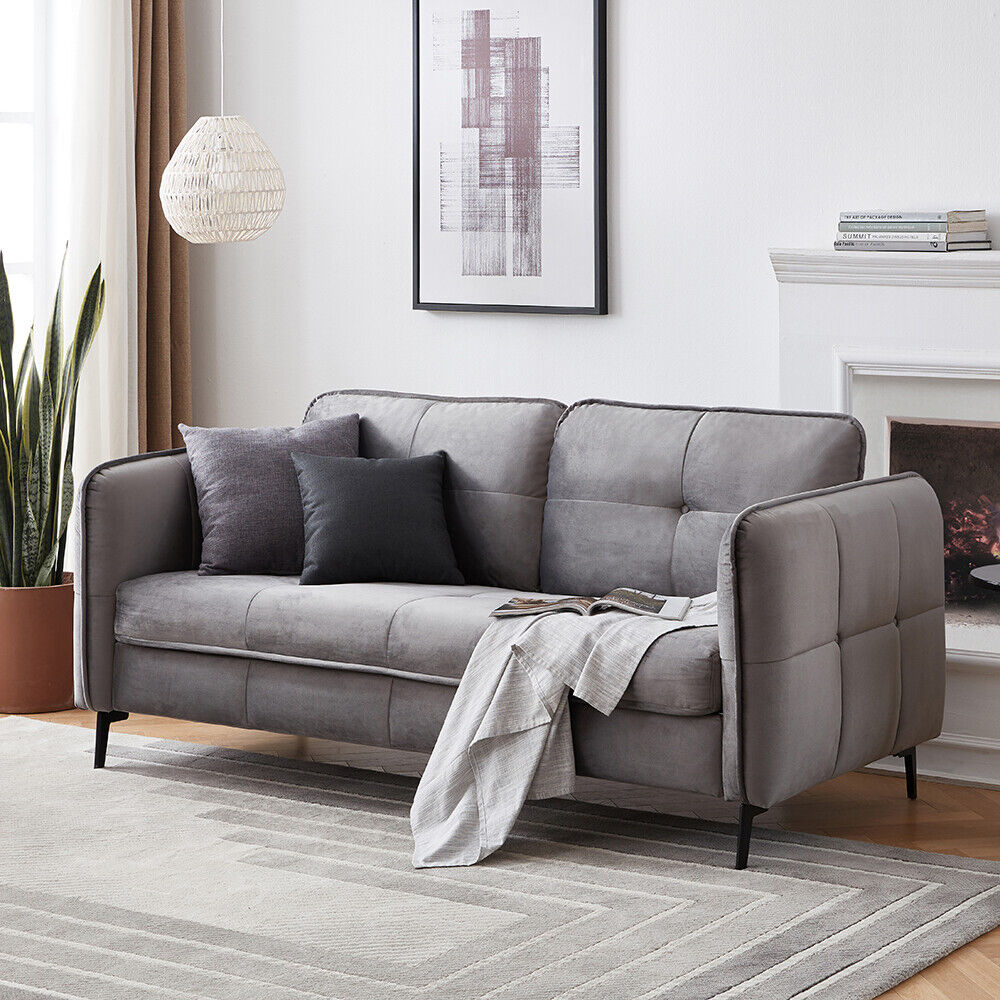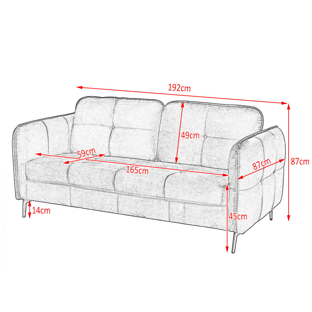 2, 3 Seater Velvet / Linen Fabric Sofa Upholstered Cushion Couch with Metal Legs