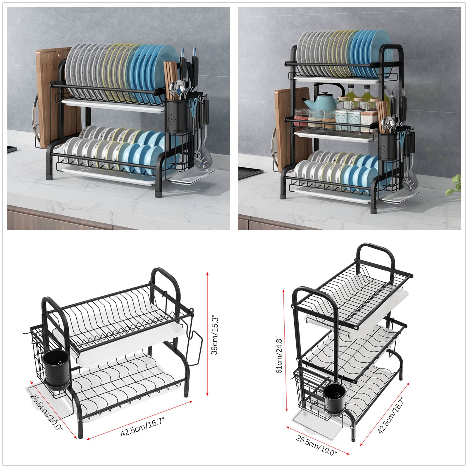 2&3 Tier Stainless Steel Kitchen Rack Drying Drain Holders Plate Dish Shelf