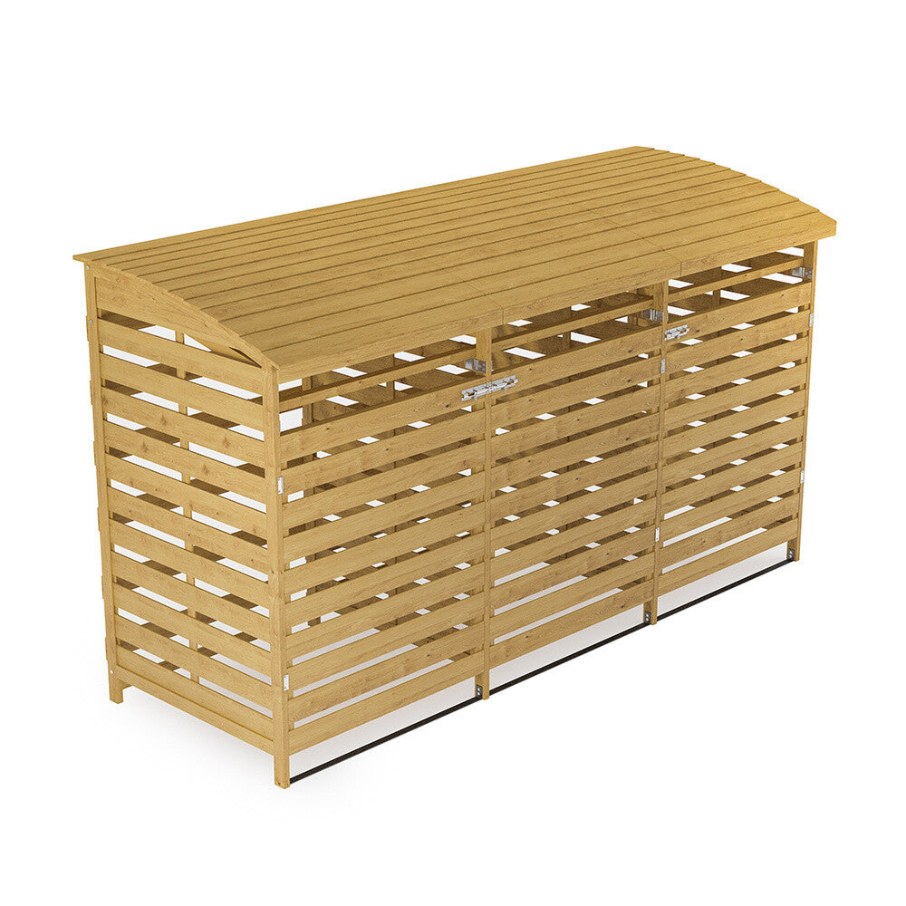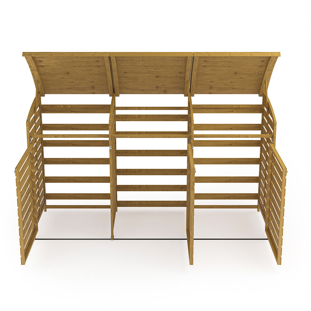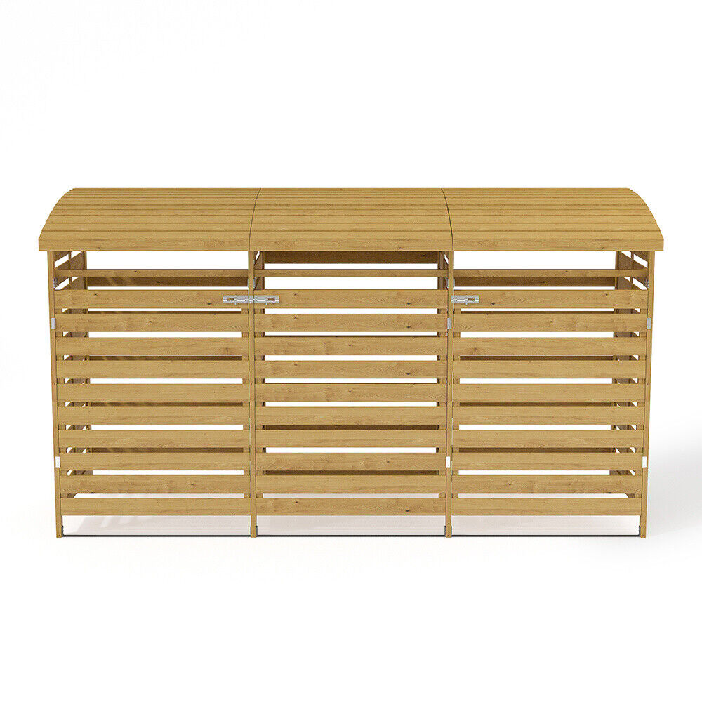 2.35m Triple Wooden Wheelie Bin Store Garden Shed Dustbin Storage w/Curved Cover