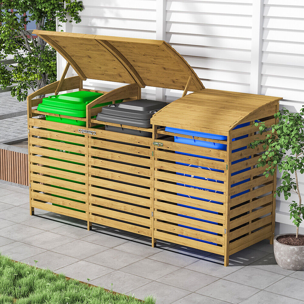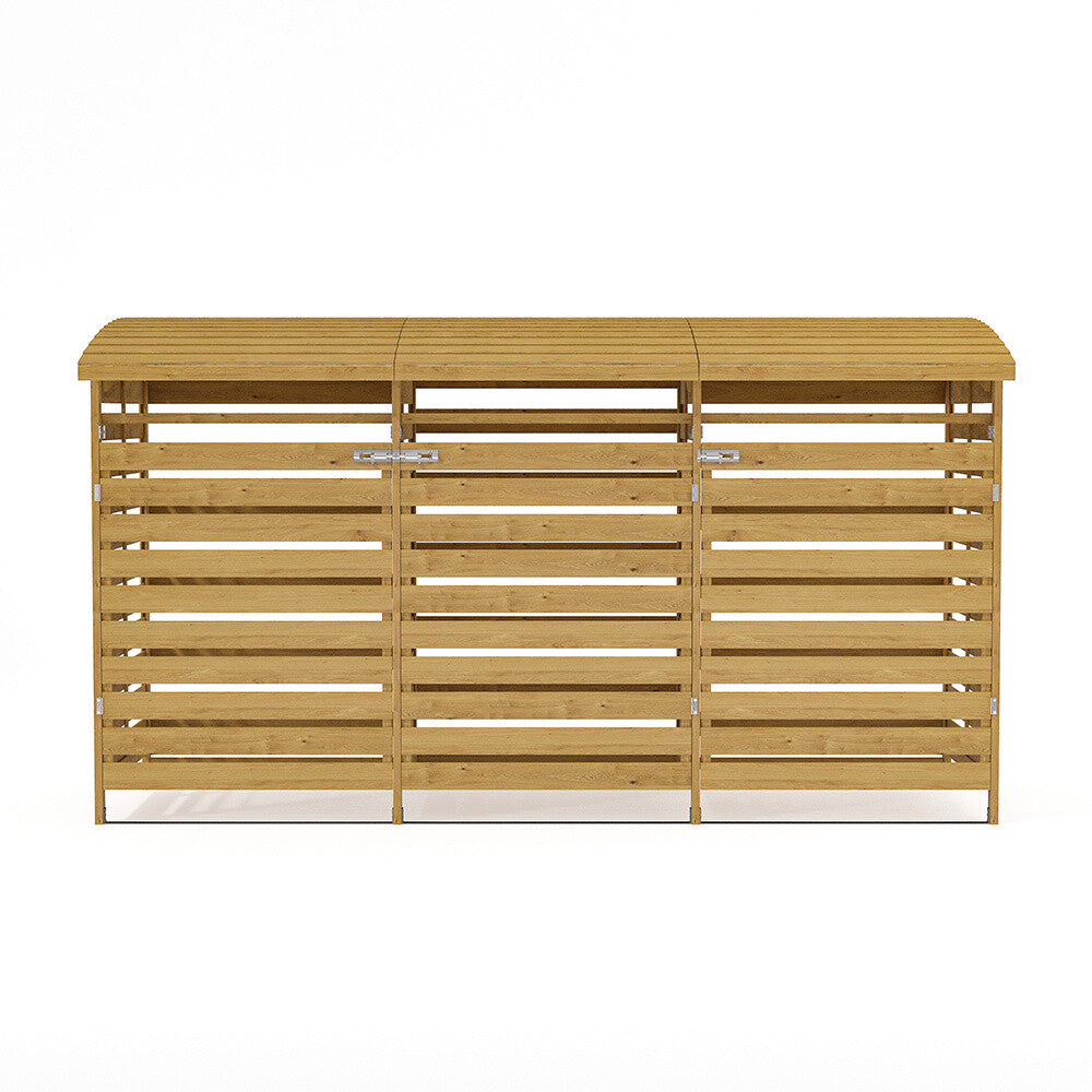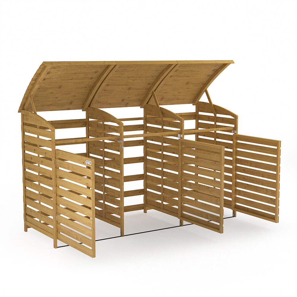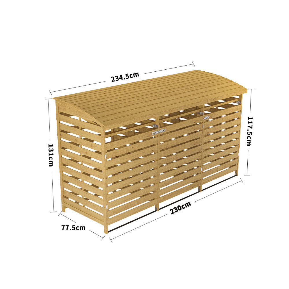 2.35m Triple Wooden Wheelie Bin Store Garden Shed Dustbin Storage w/Curved Cover
