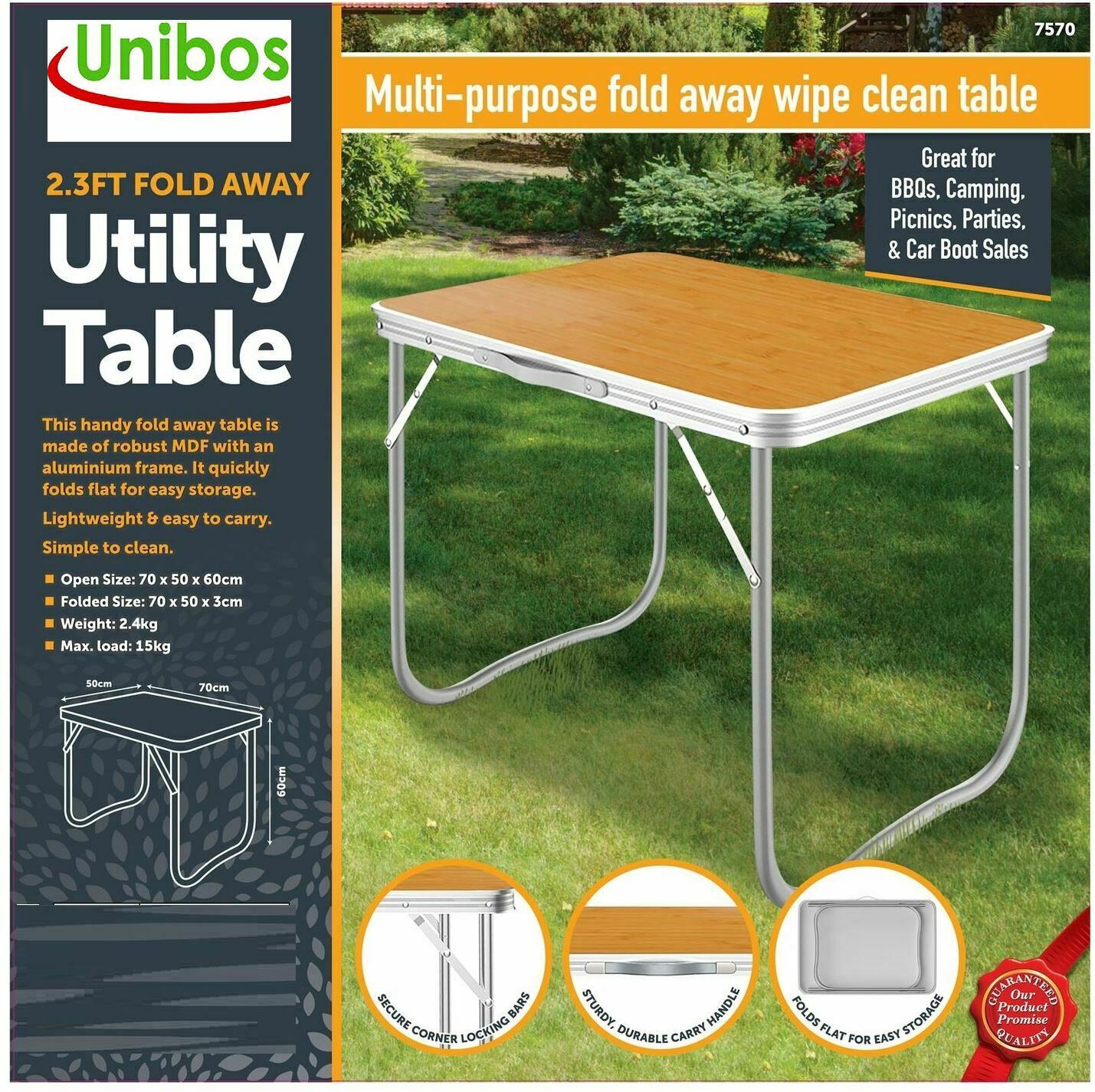 2.3FT FOLDING PORTABLE CAMPING TABLE, WOODEN MDF,OUTDOOR DINING BBQ PICNIC PARTY