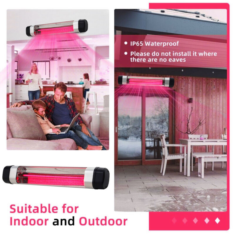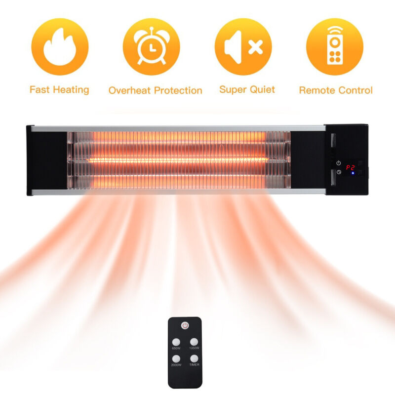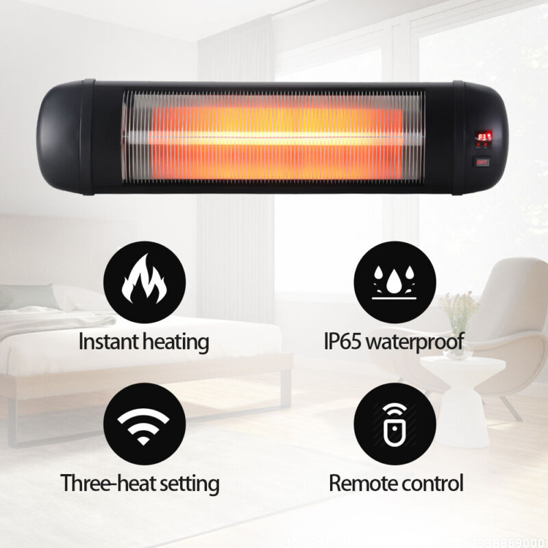 2/3KW Outdoor Electric Patio Heater Garden Wall Mounted Warmer Infrared & Remote