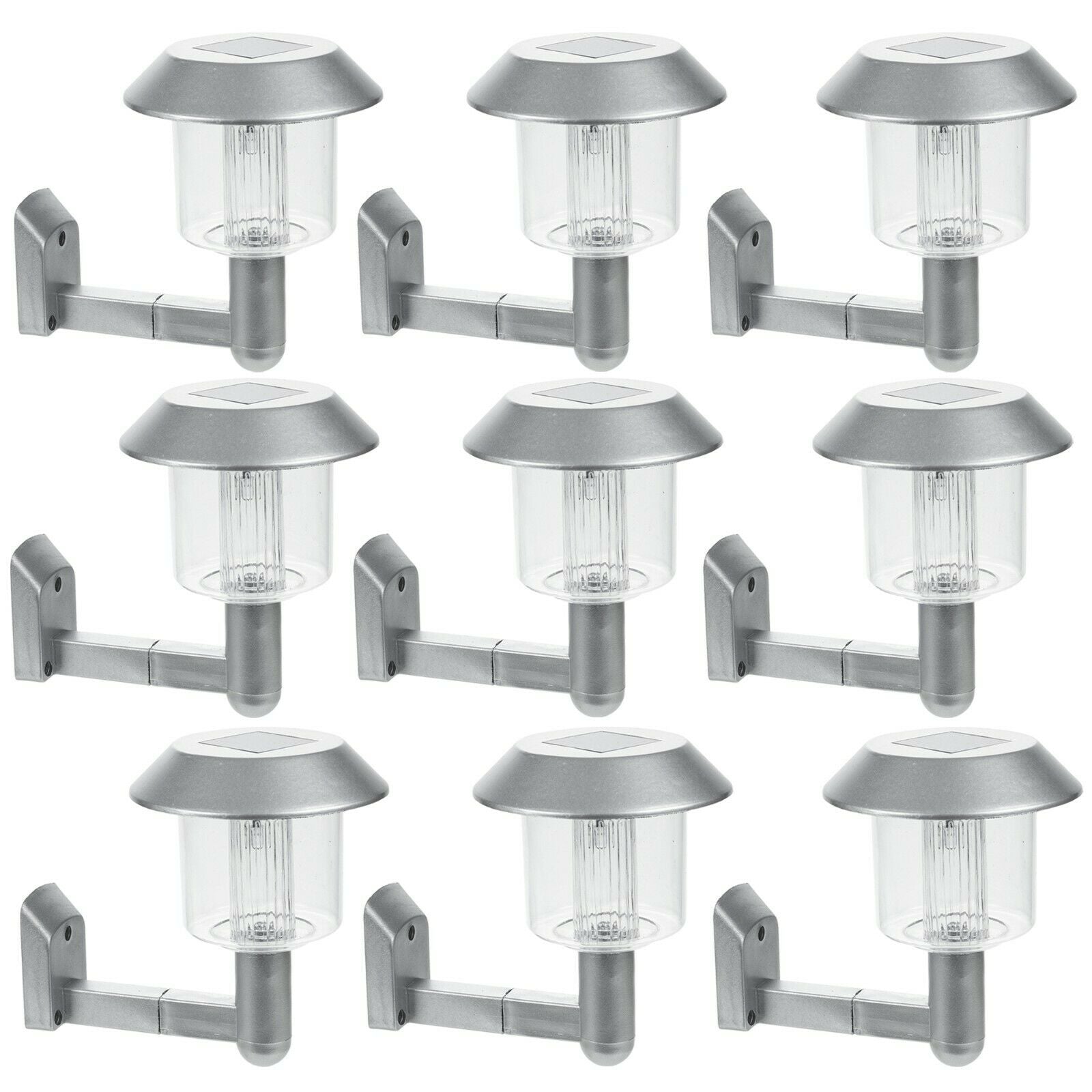 2, 4, 6, 10 x Silver Solar Powered LED Wall Light Outdoor Garden Safety Lighting