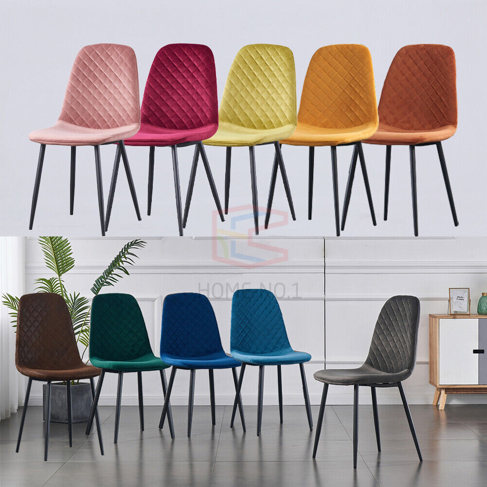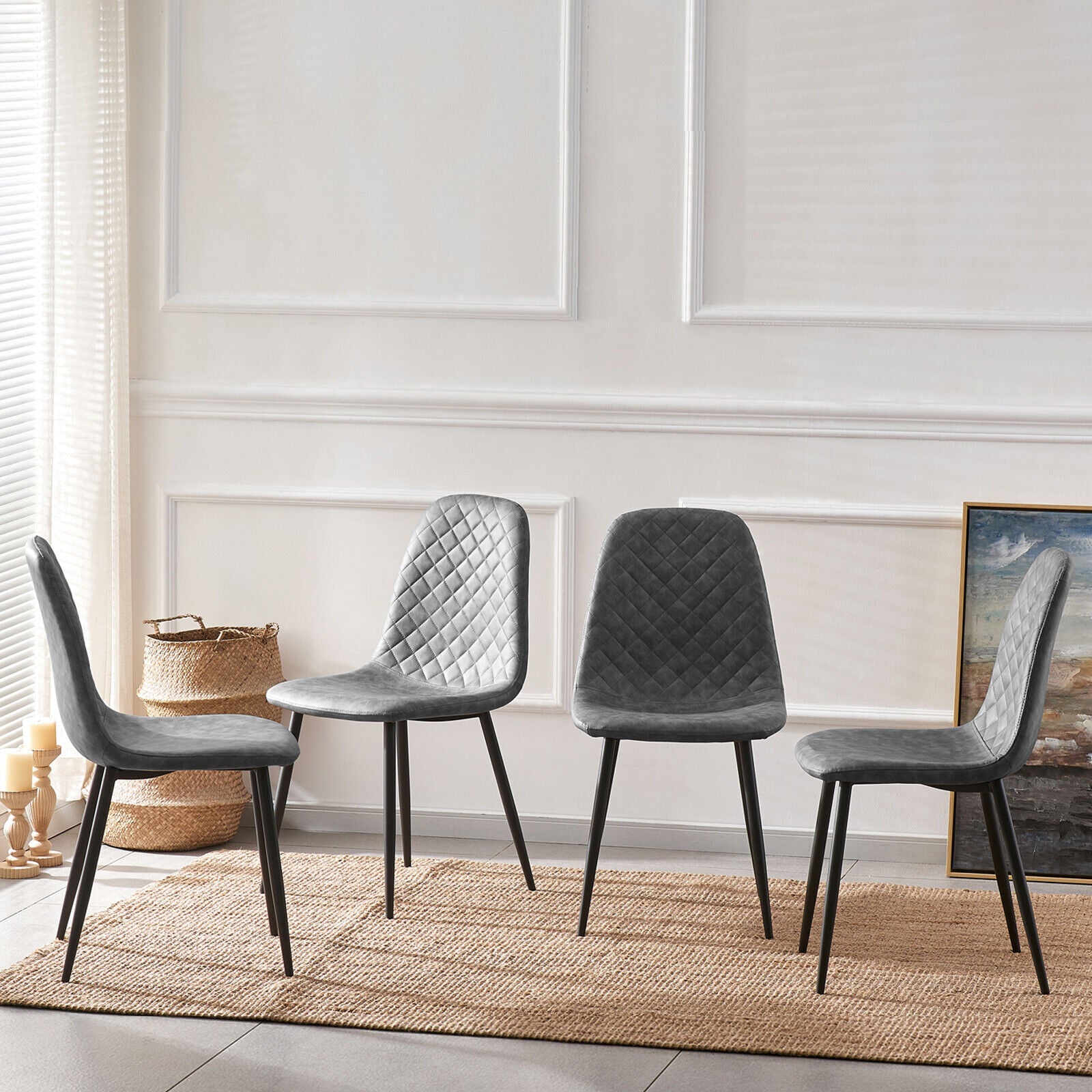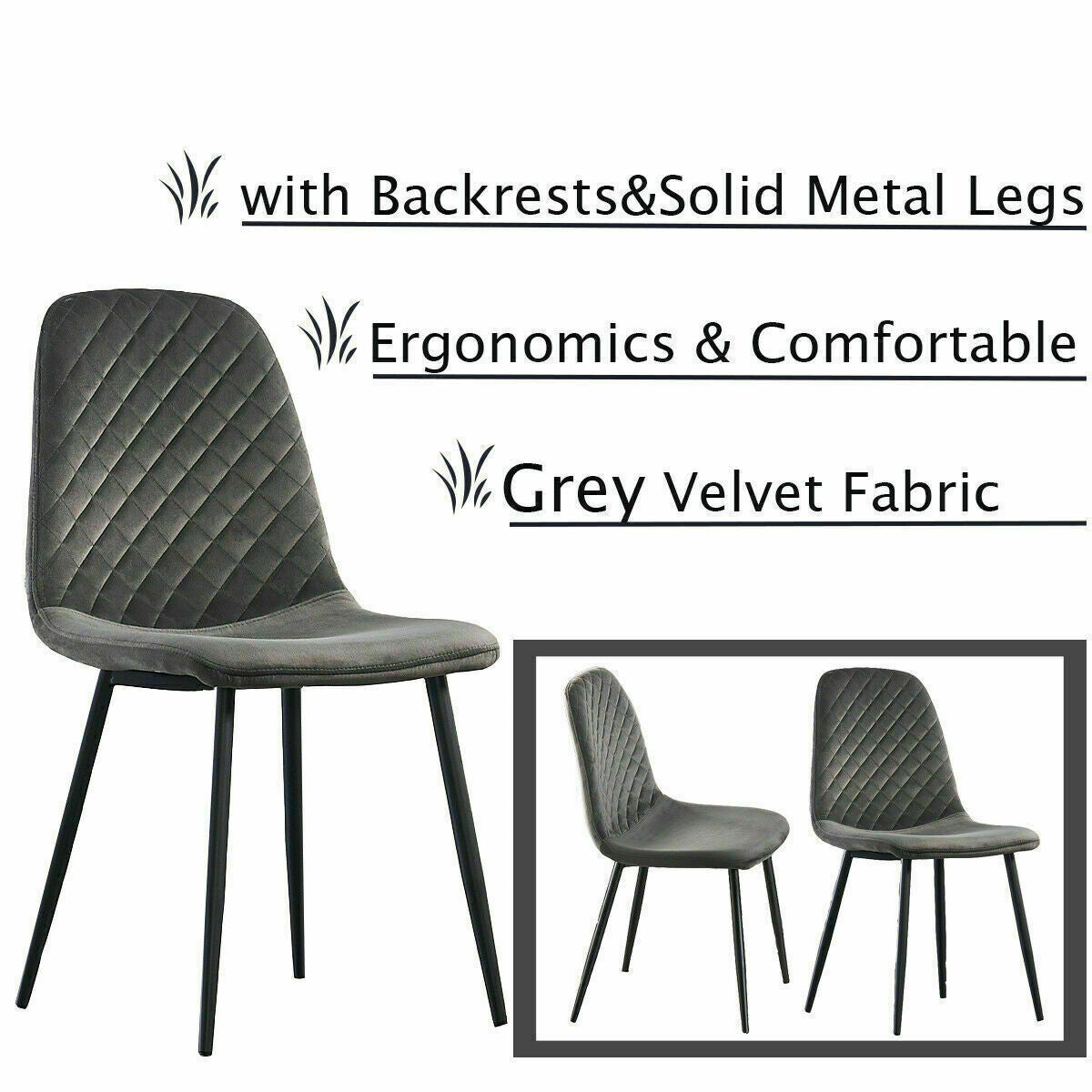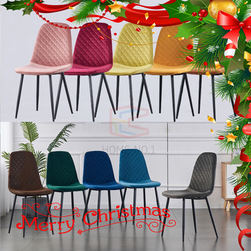 2/4/6 Dining Chairs Set Velvet Faux Suede Leather Padded Seat Metal Leg Grey New