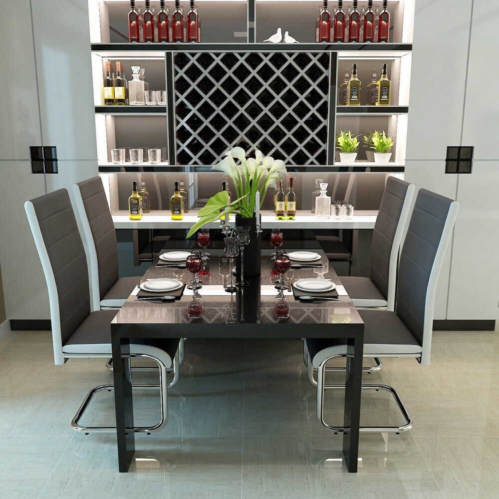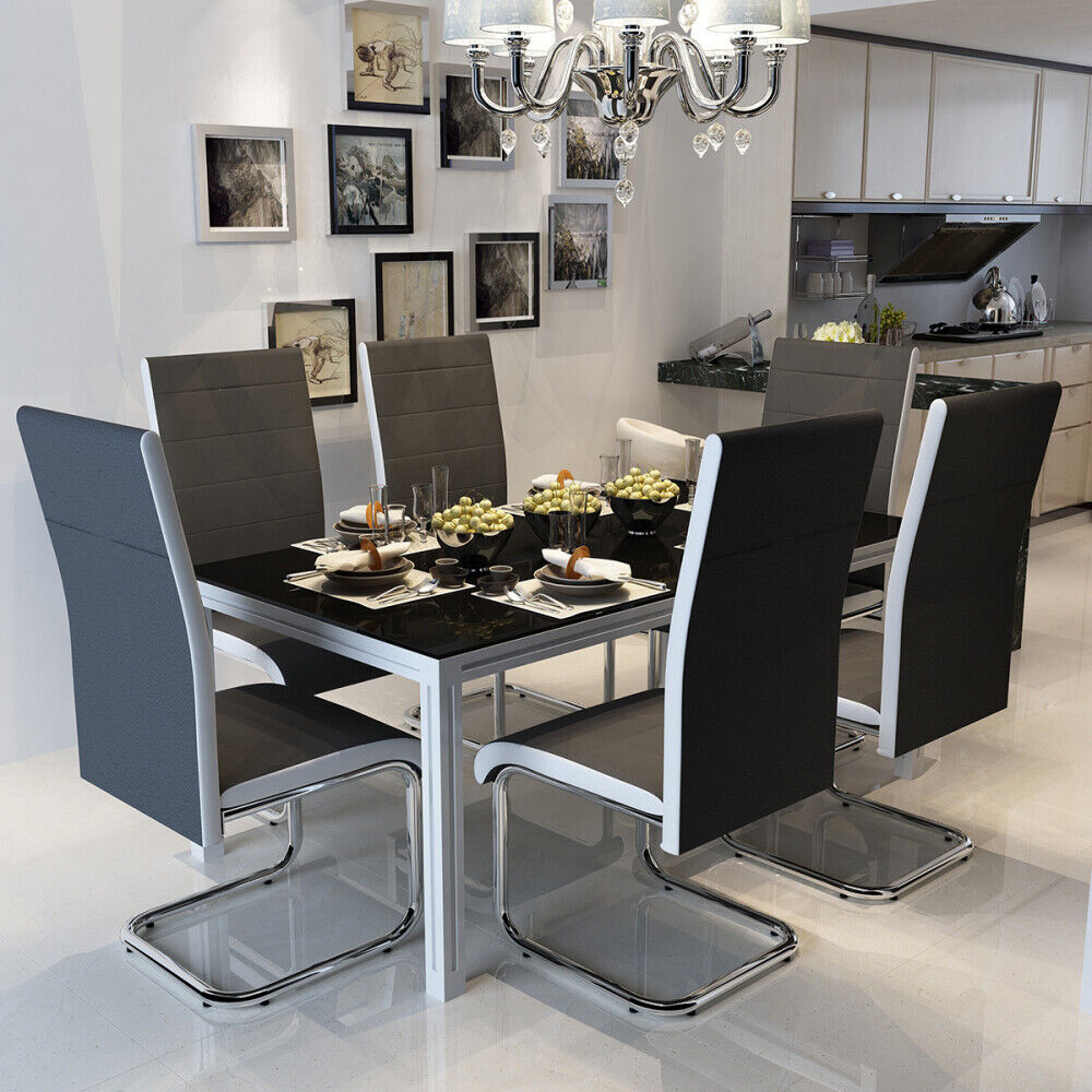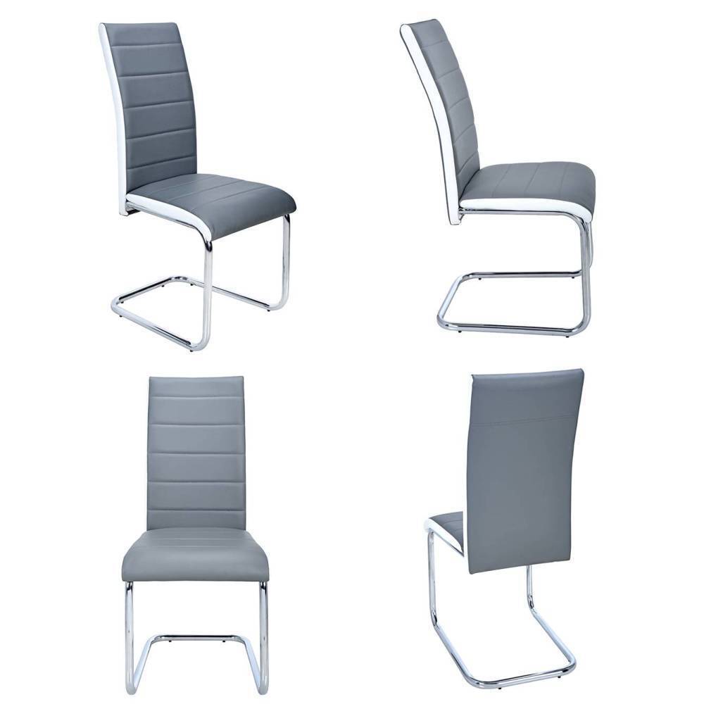 2 4 6 Grey Faux Leather Dining Chairs High Back Chrome Legs Home Furniture Chair