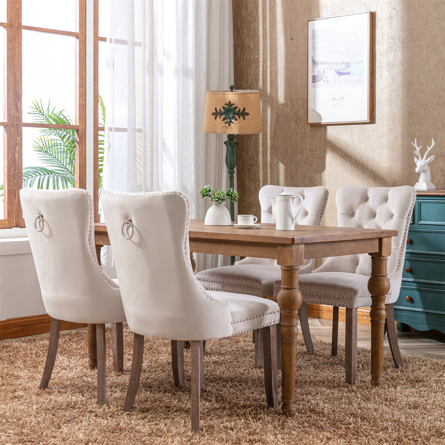2 / 4 /6 Pcs Velvet Dining Chairs with Wooden Legs for Home Dining Room Kitchen
