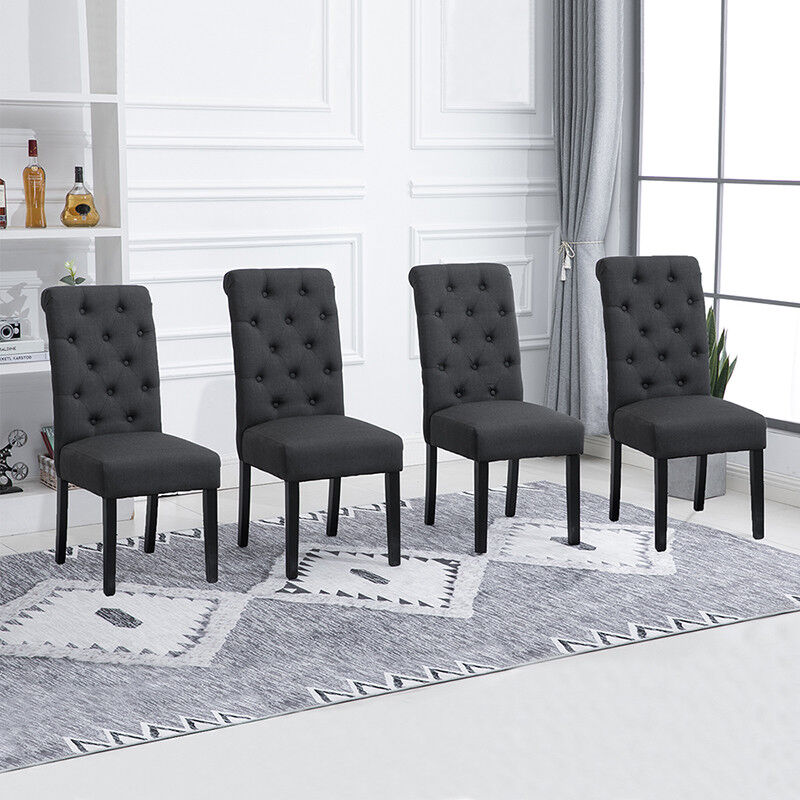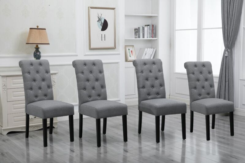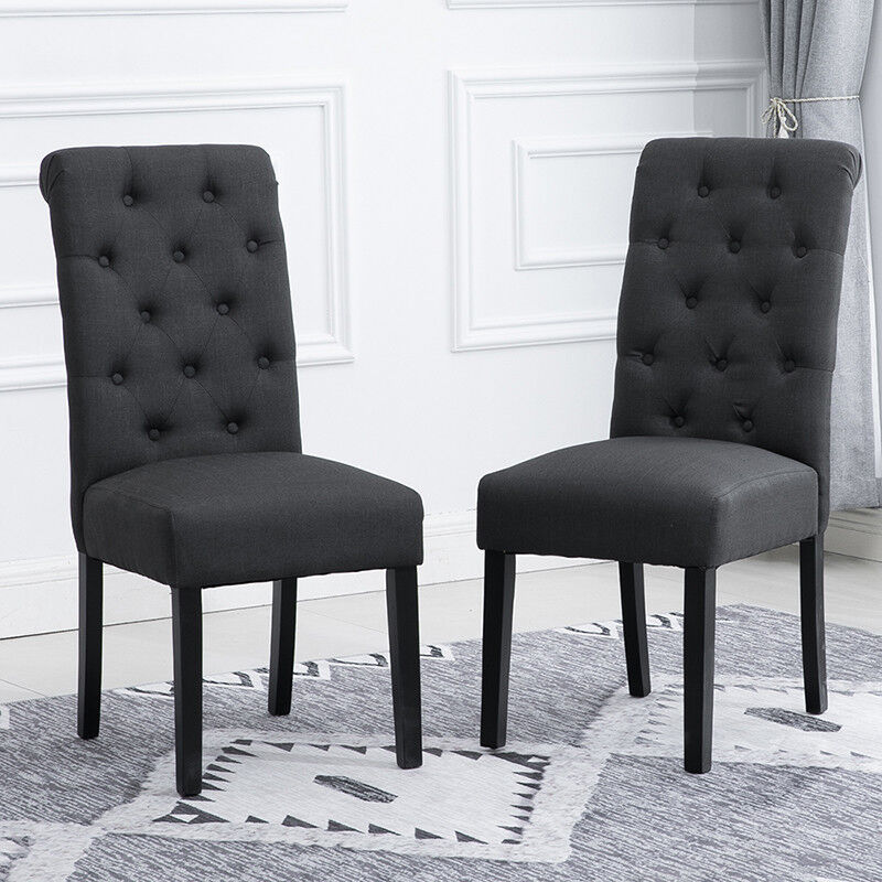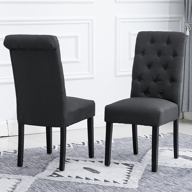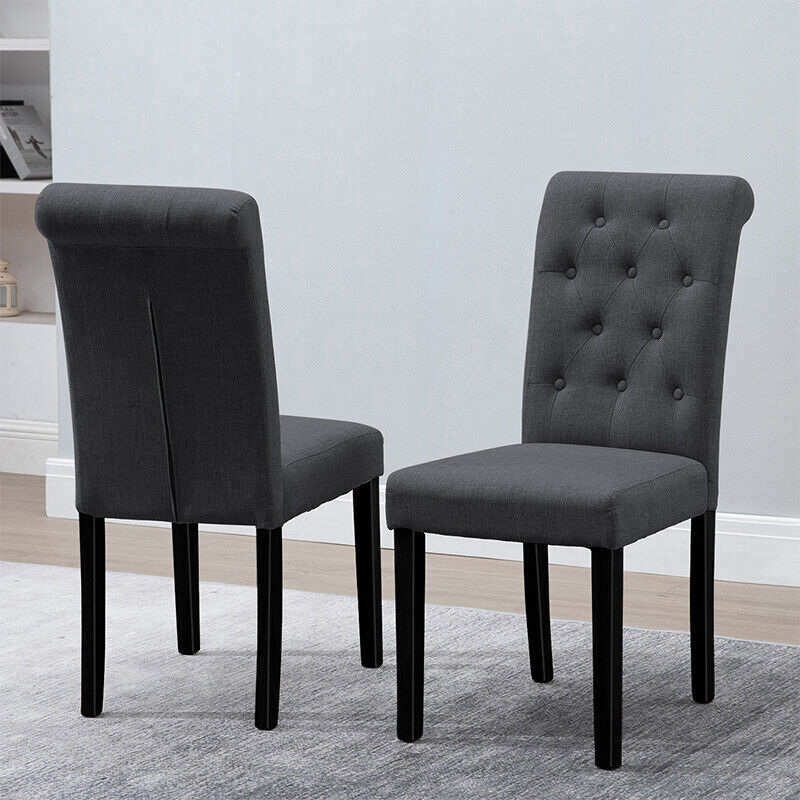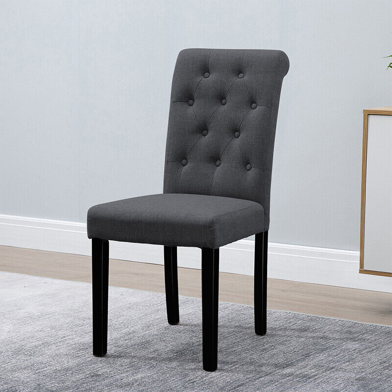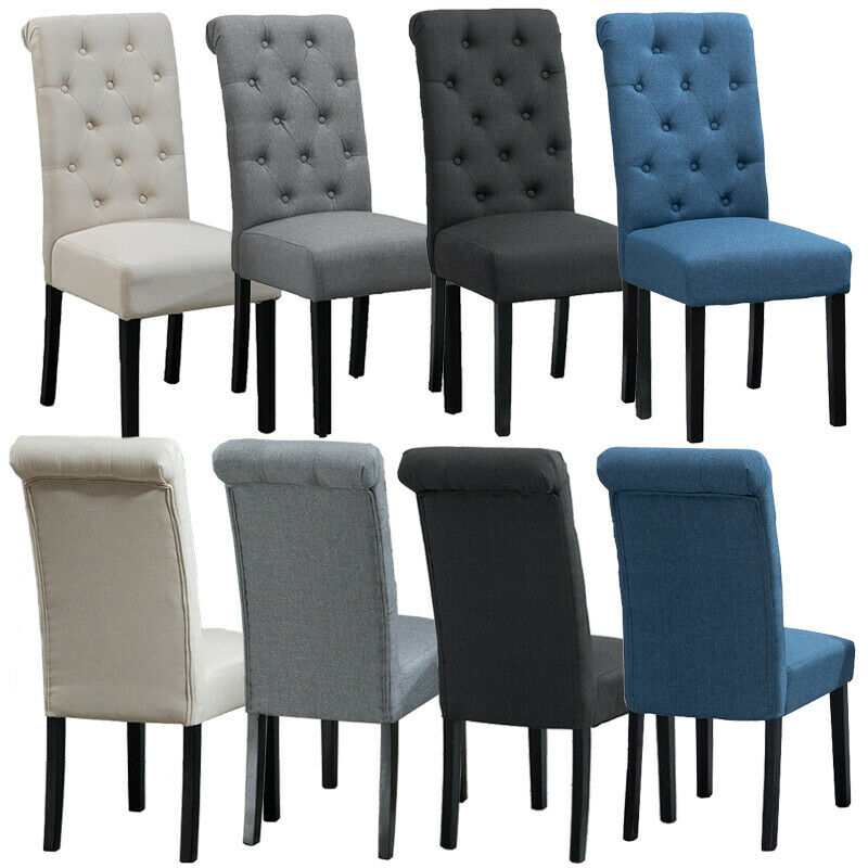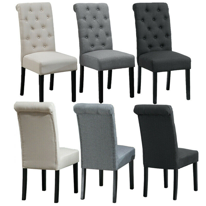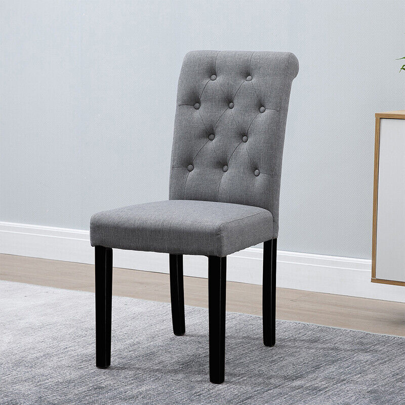 2/4/6x Fabric Button Tufted Dining Chairs Upholstered Kitchen Dining Room Grey