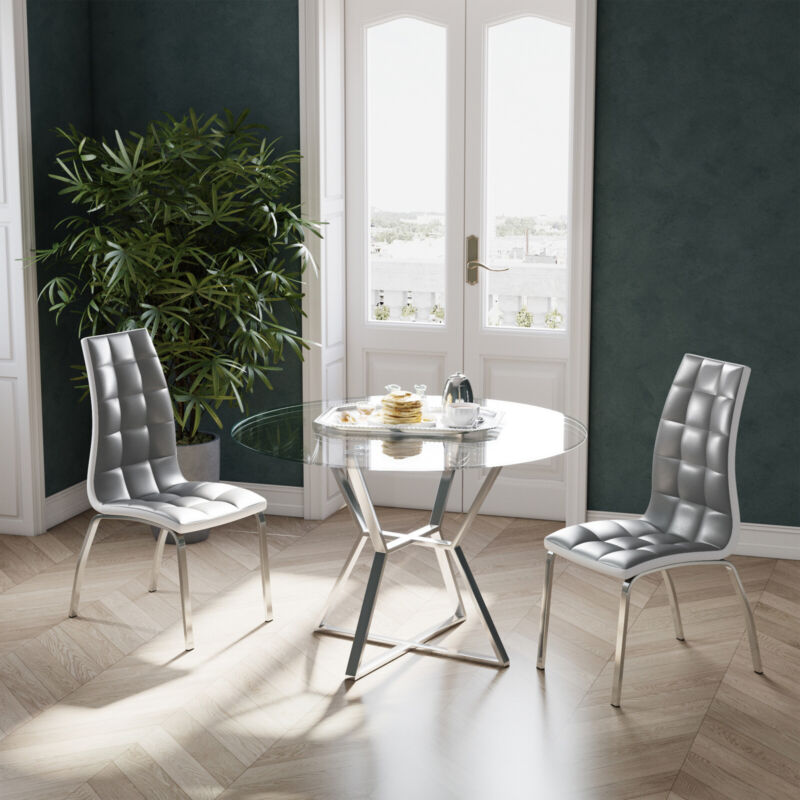 2 4 Dining Chairs High Back PU Leather Home Kitchen Chair Modern Chrome Legs Set