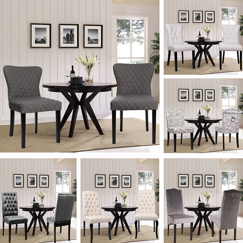 2 4 Dining Chairs Leather Velvet Linen Fabric High Back For Home Commercial Shop