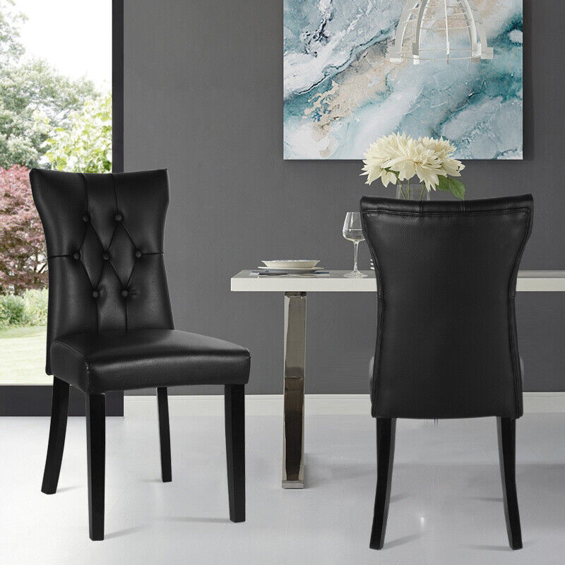 2/4 PCS Black Faux Leather Dining Chairs Set Curved High Back Button Padded Seat