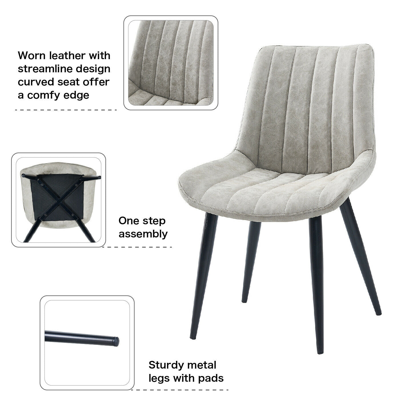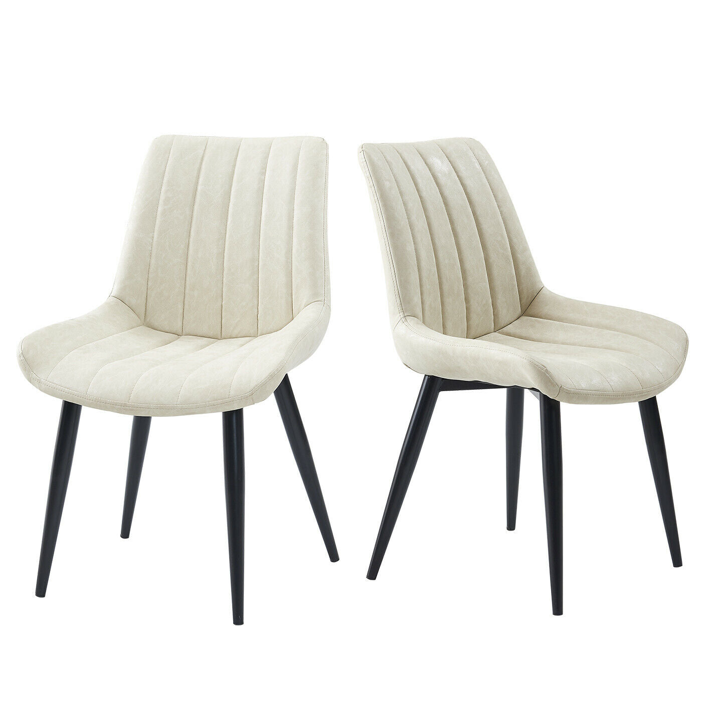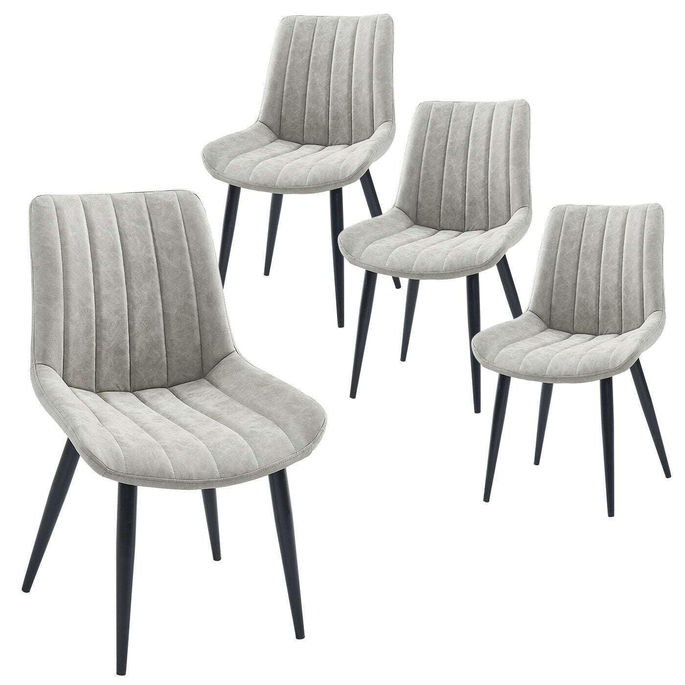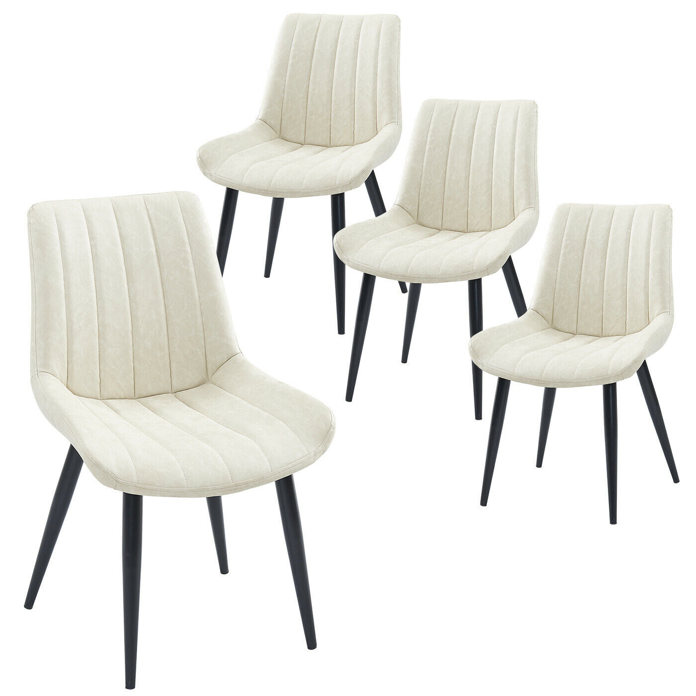 2 4 PCS Stripe Dining Chairs Faux Leather Retro Design for Kitchen Living Room