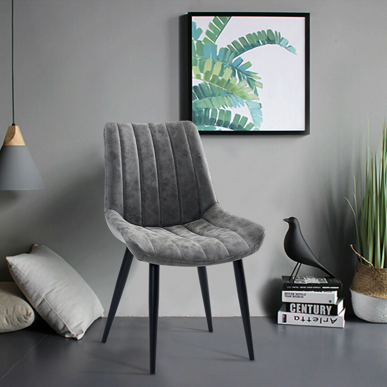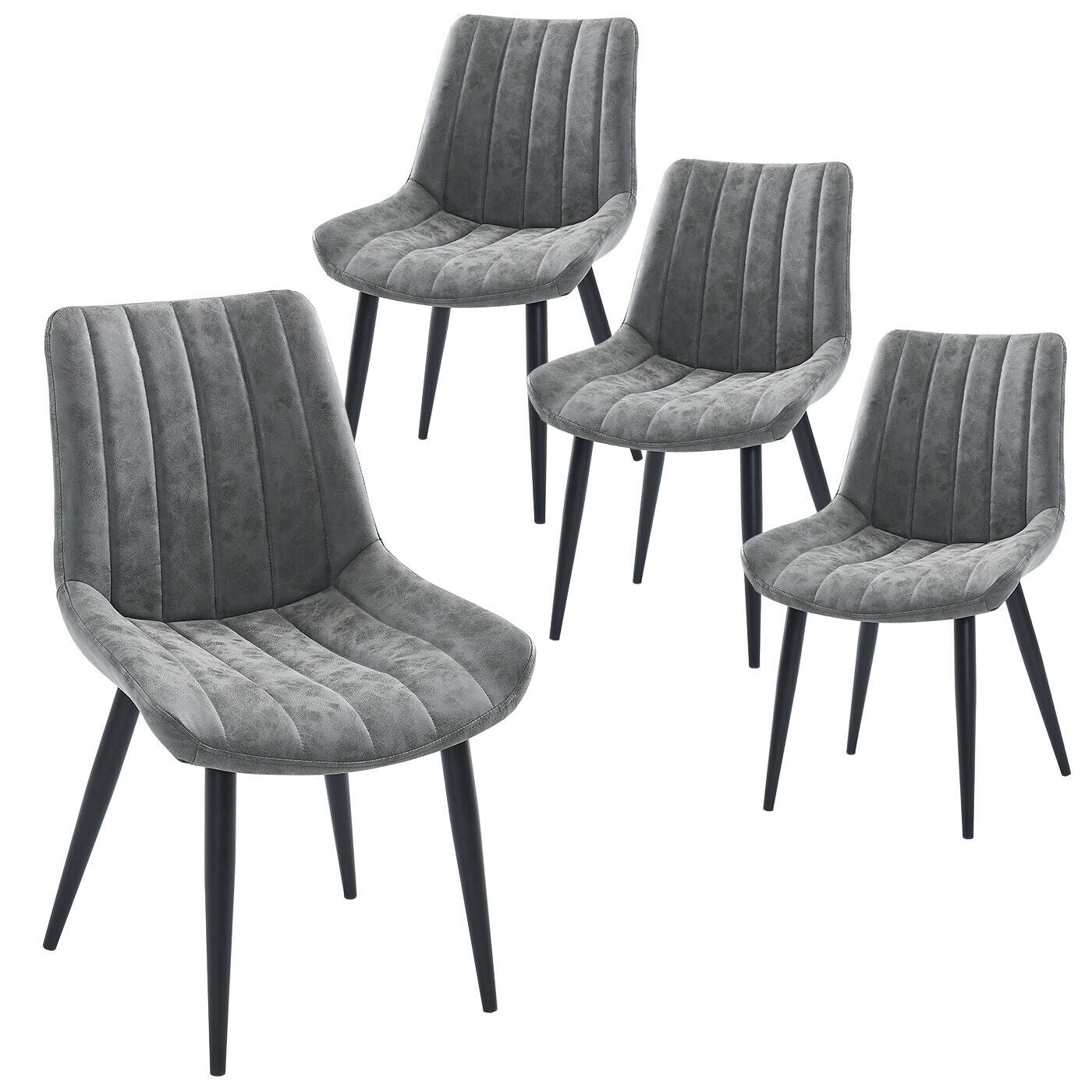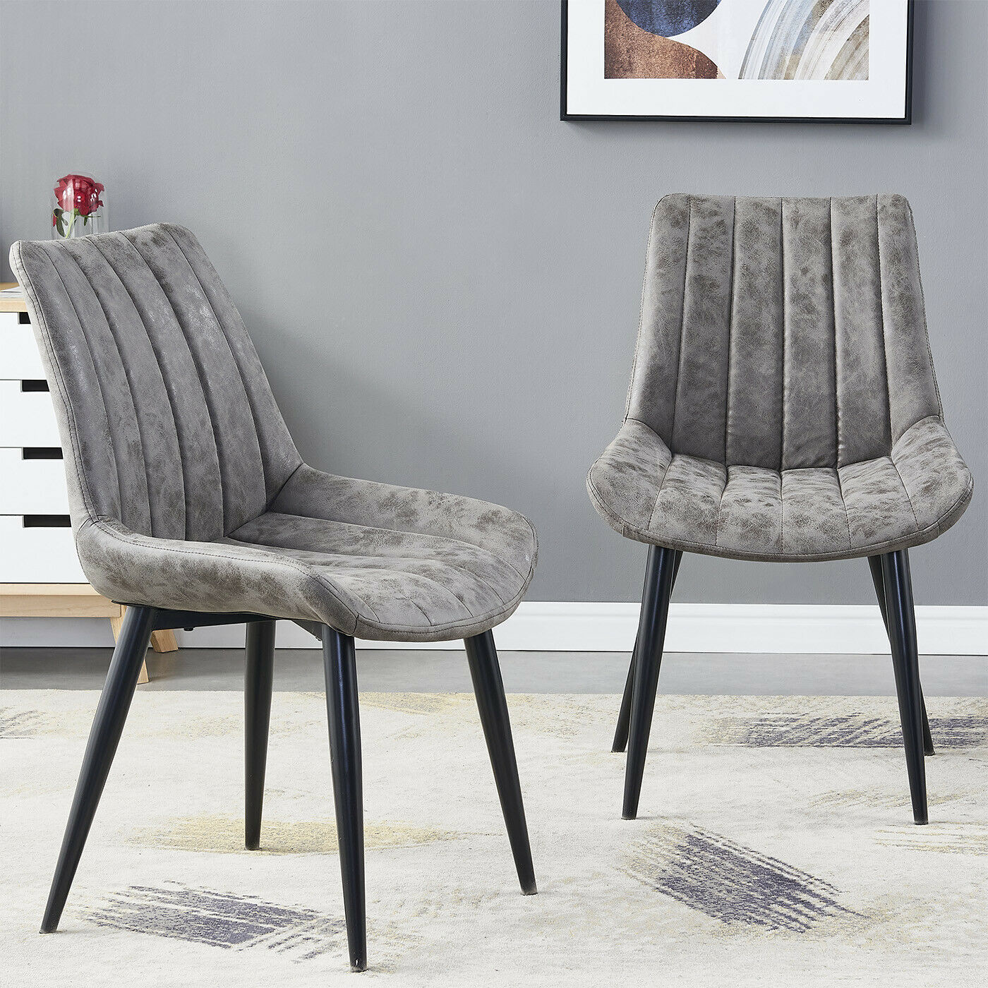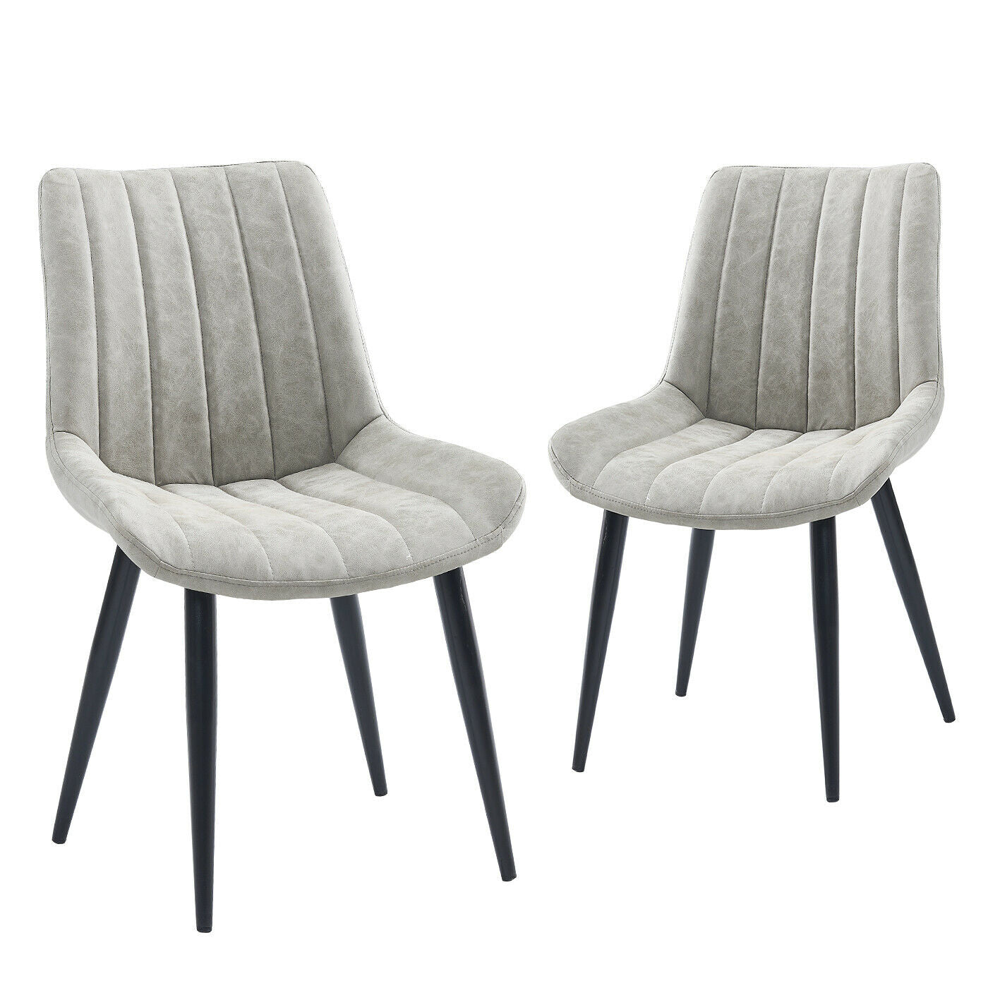 2 4 PCS Stripe Dining Chairs Faux Leather Retro Design for Kitchen Living Room