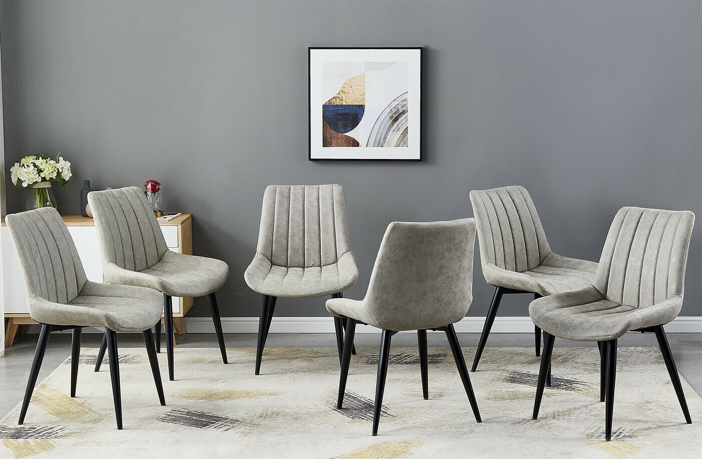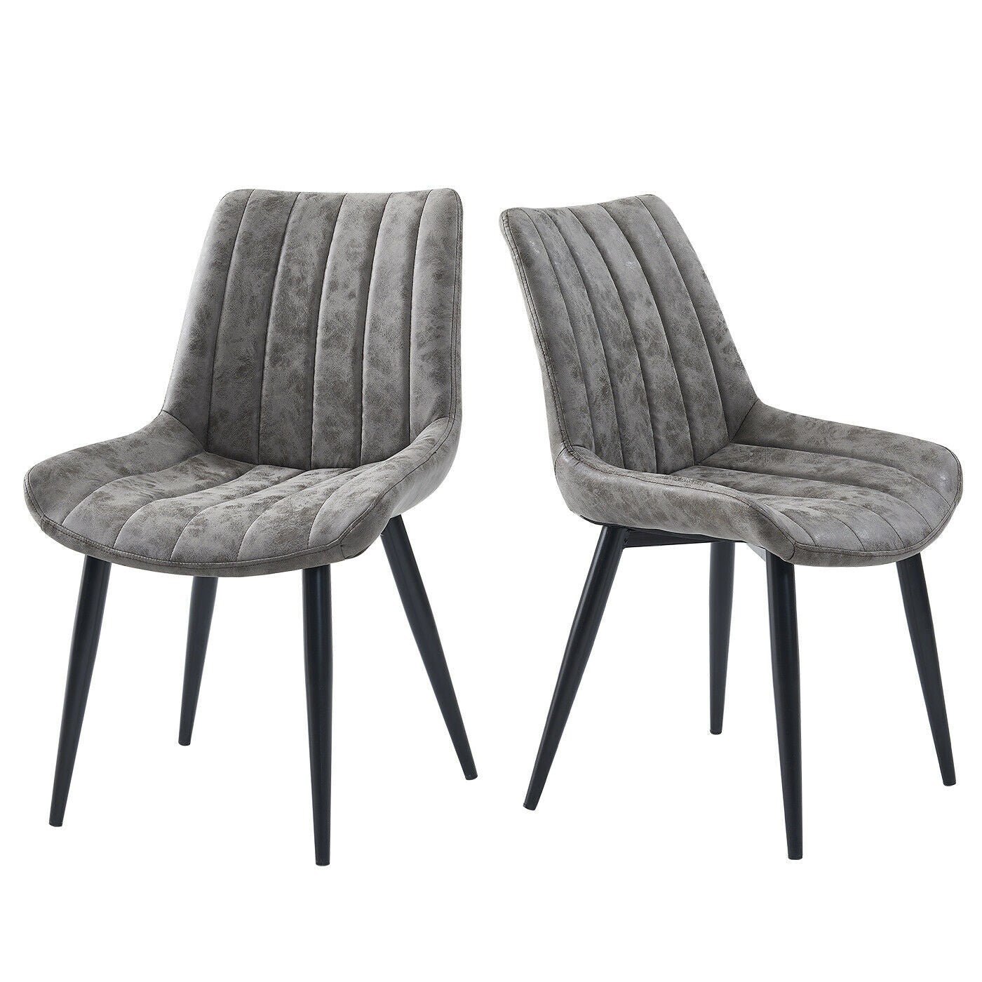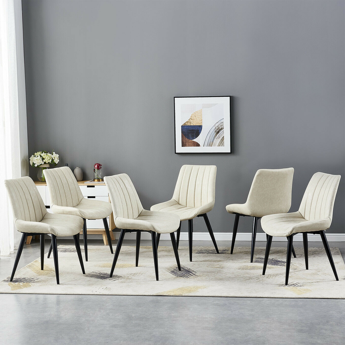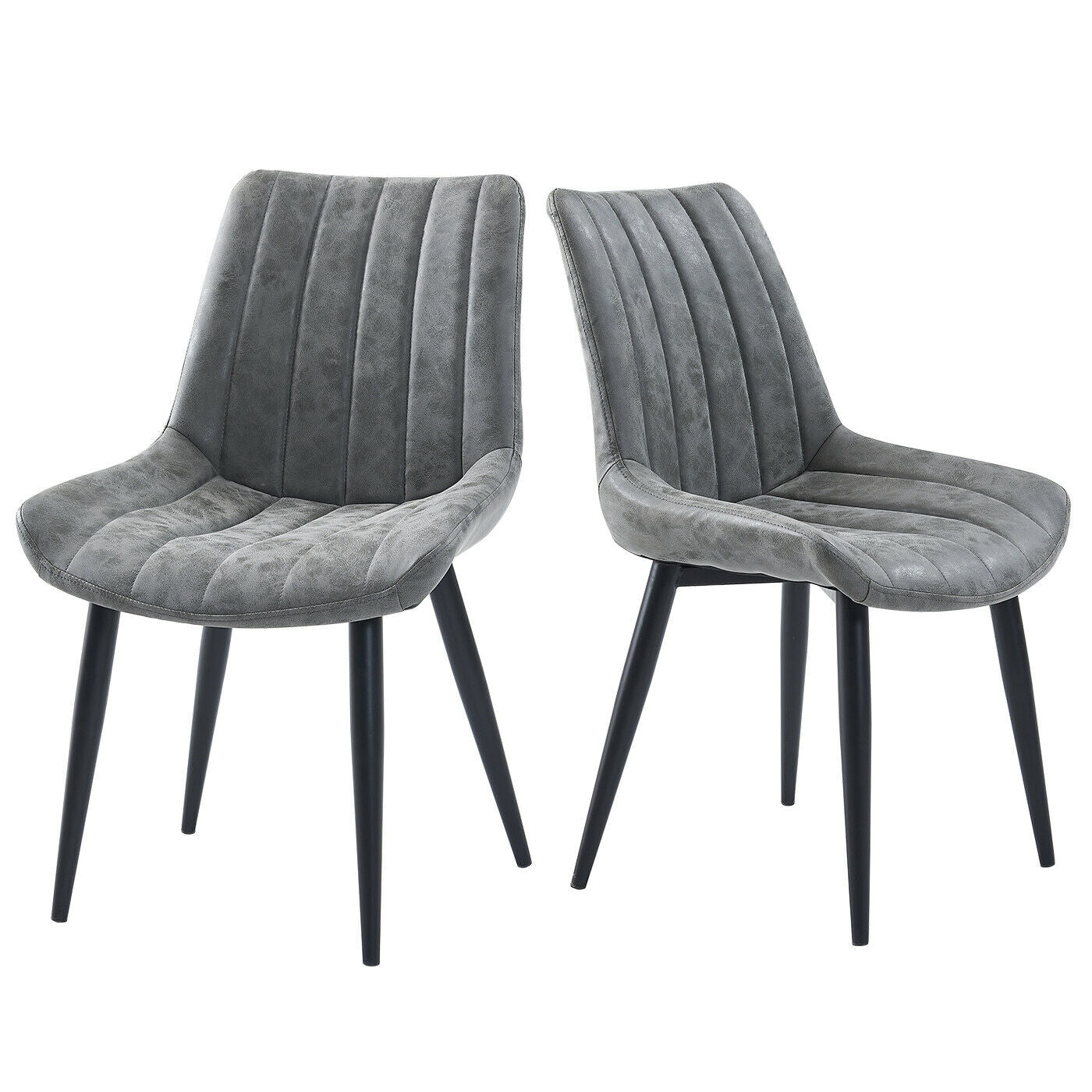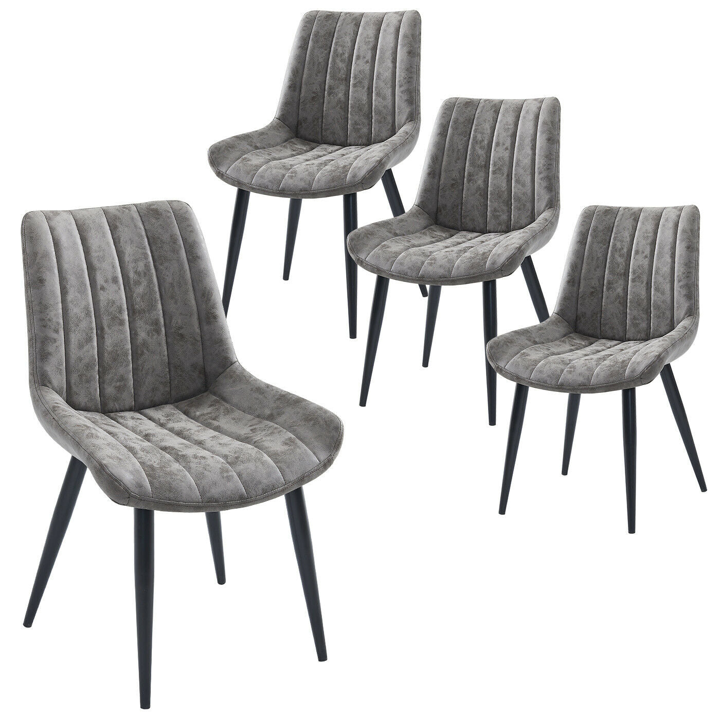 2 4 PCS Stripe Dining Chairs Faux Leather Retro Design for Kitchen Living Room