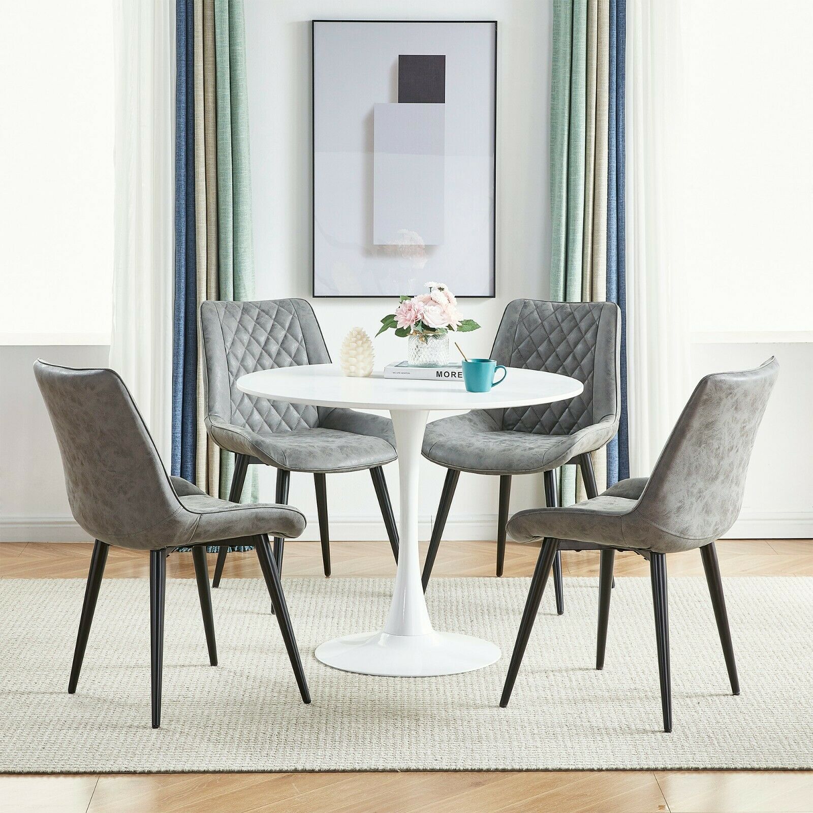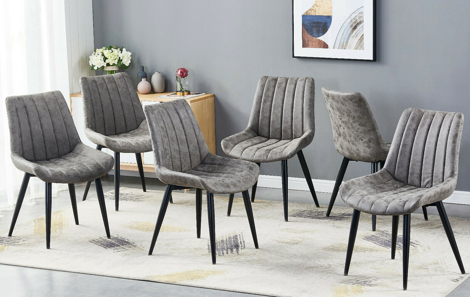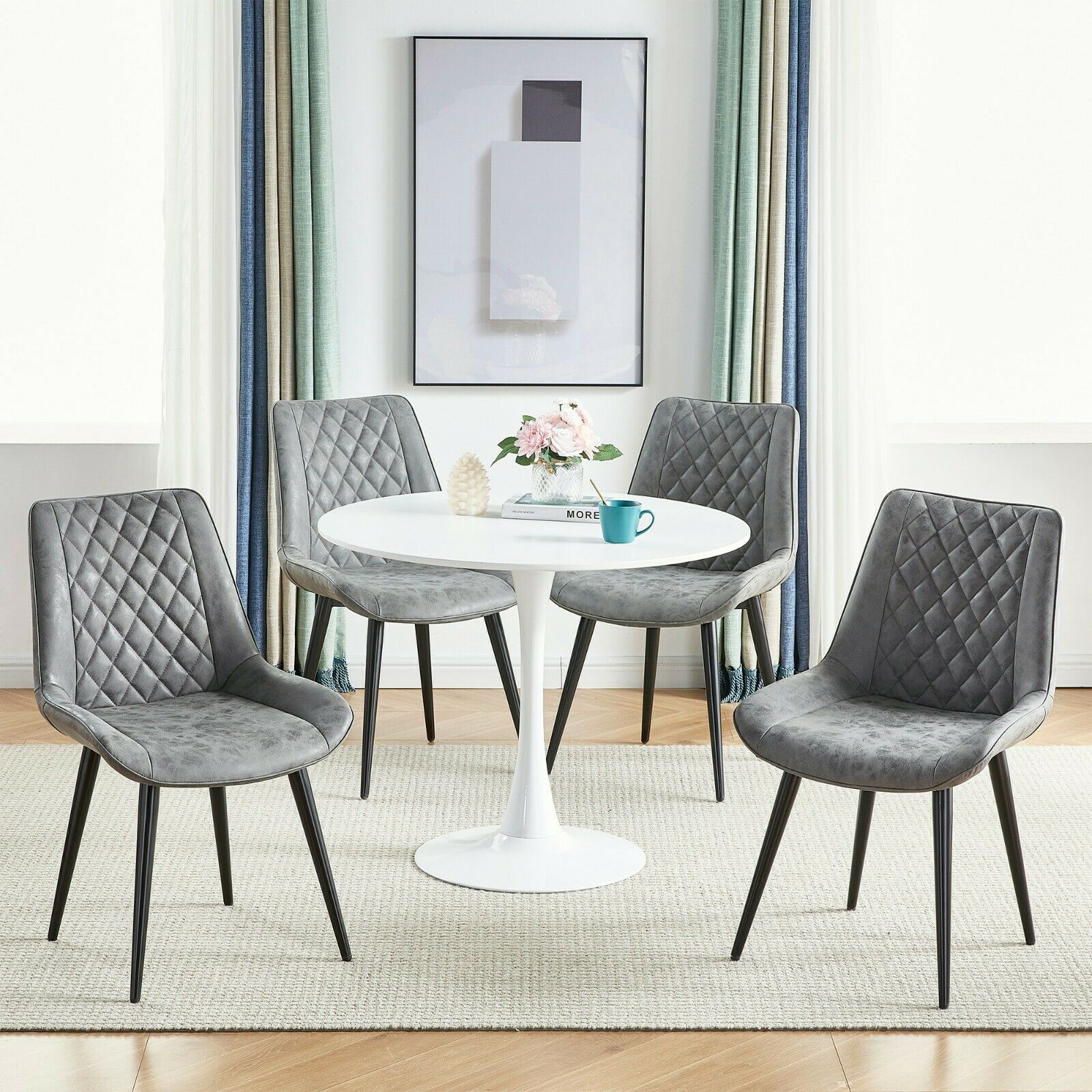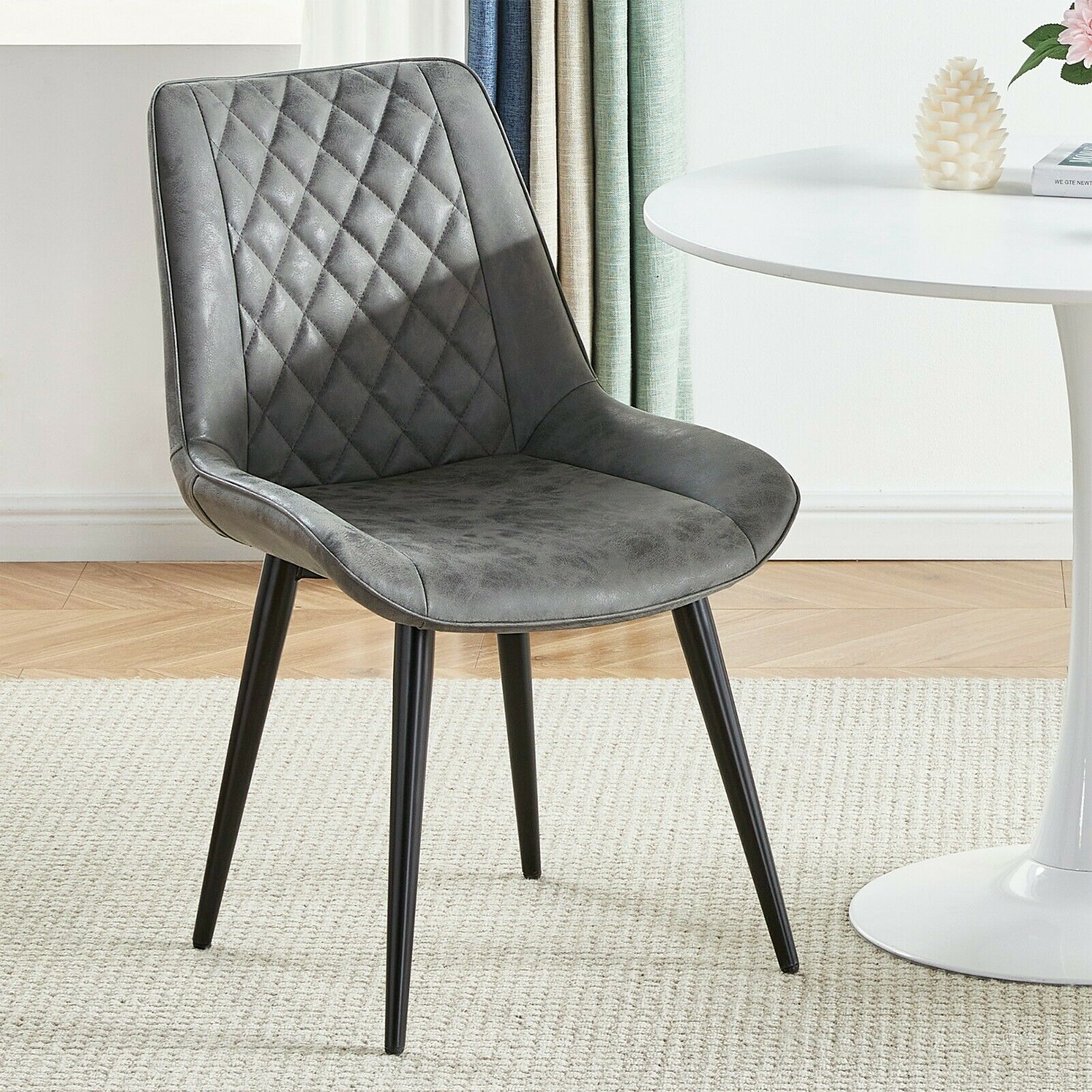 2 4 PCS Stripe Dining Chairs Faux Leather Retro Design for Kitchen Living Room