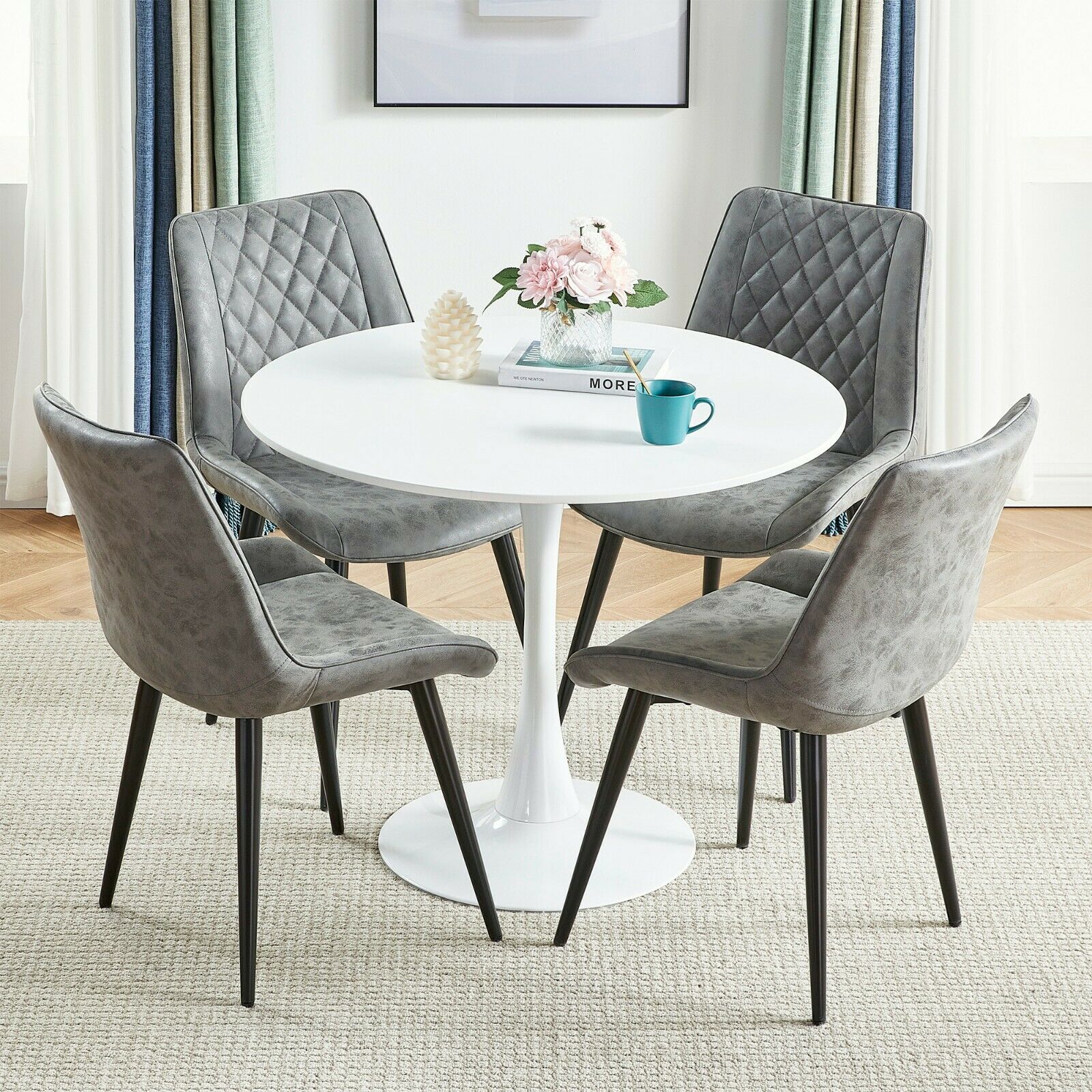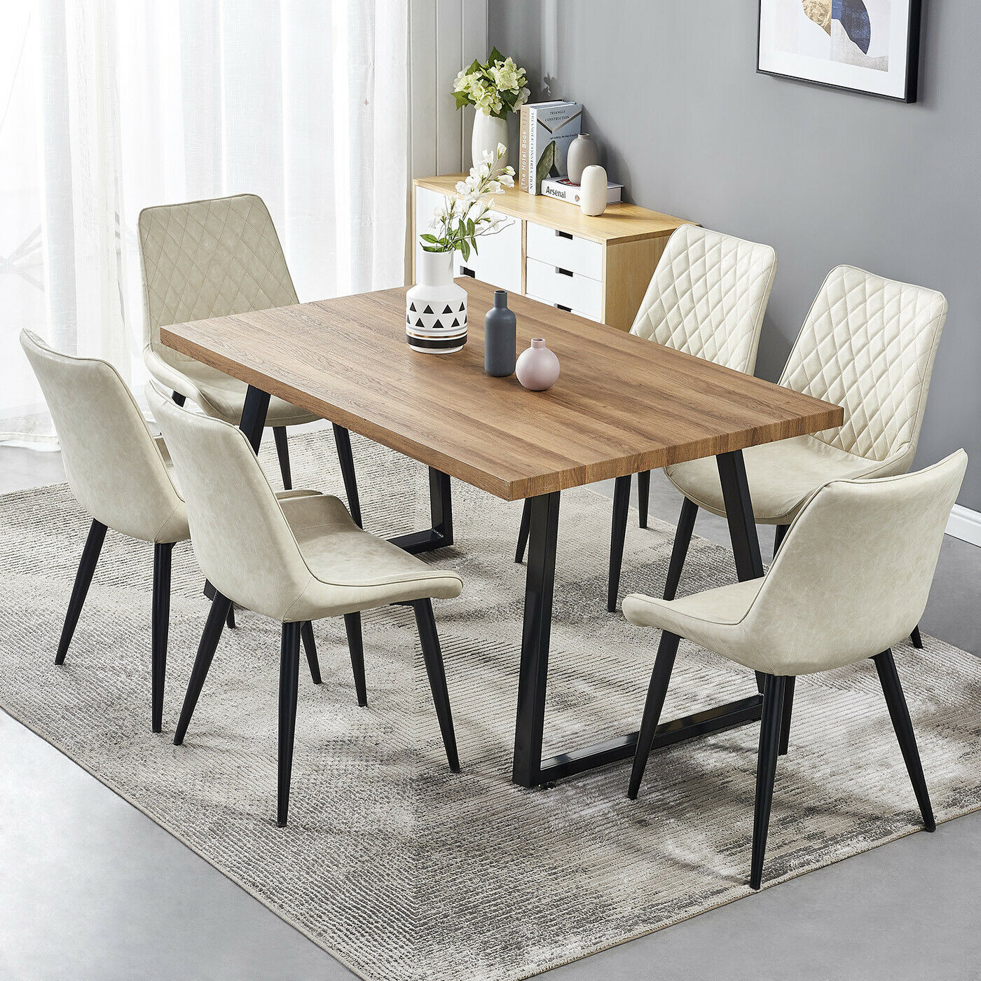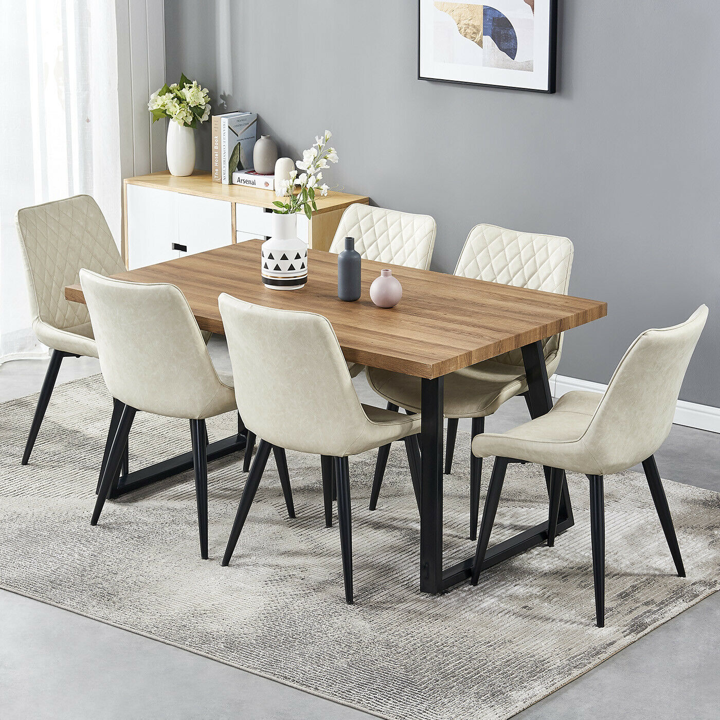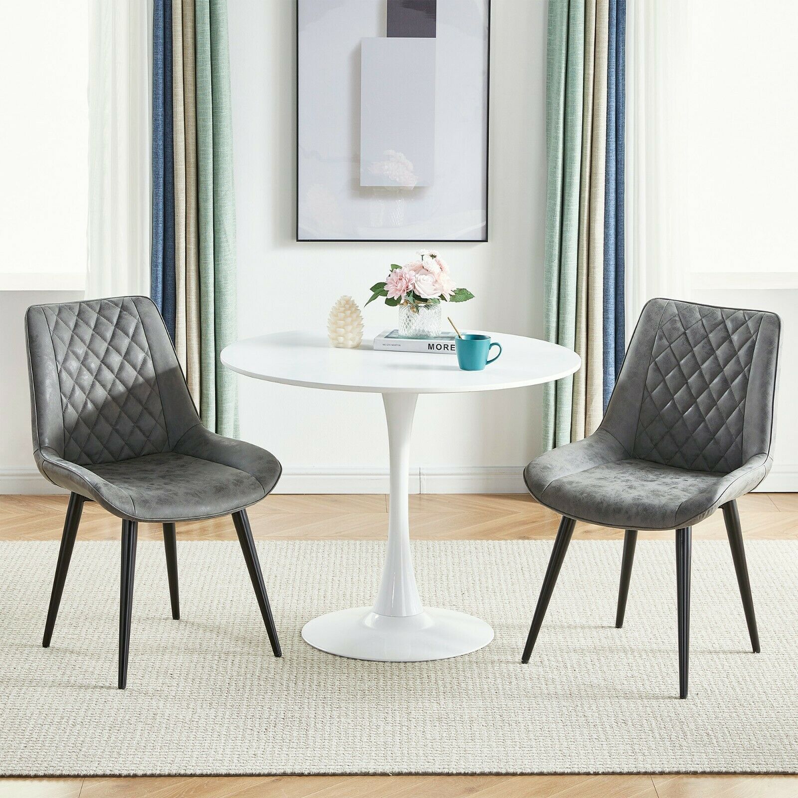 2 4 PCS Stripe Dining Chairs Faux Leather Retro Design for Kitchen Living Room