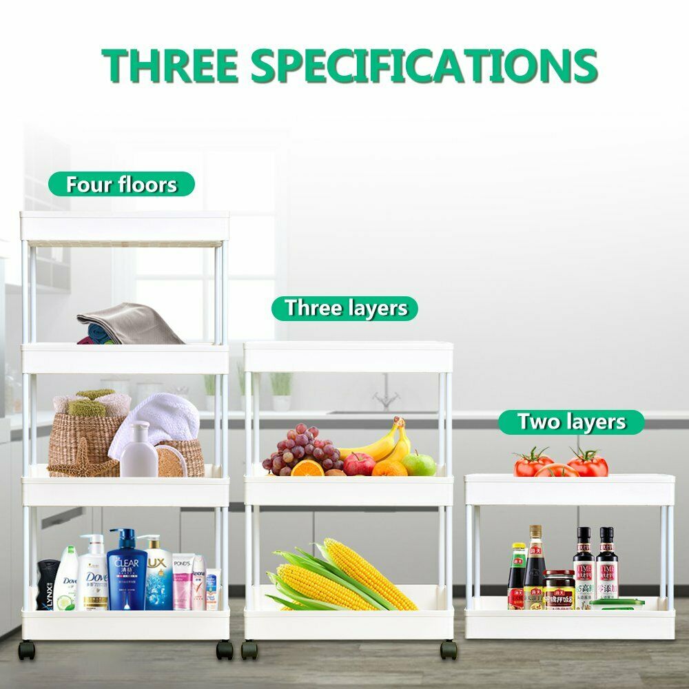 2-4 Tier Kitchen Bathroom Trolley Rack Holder Storage Shelf Organiser on Wheels