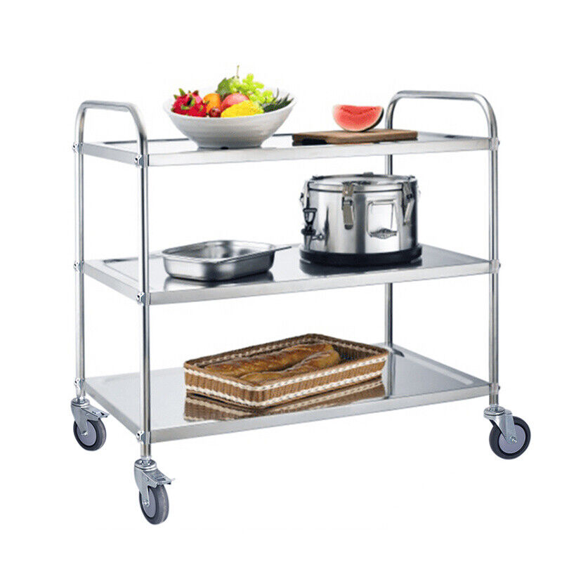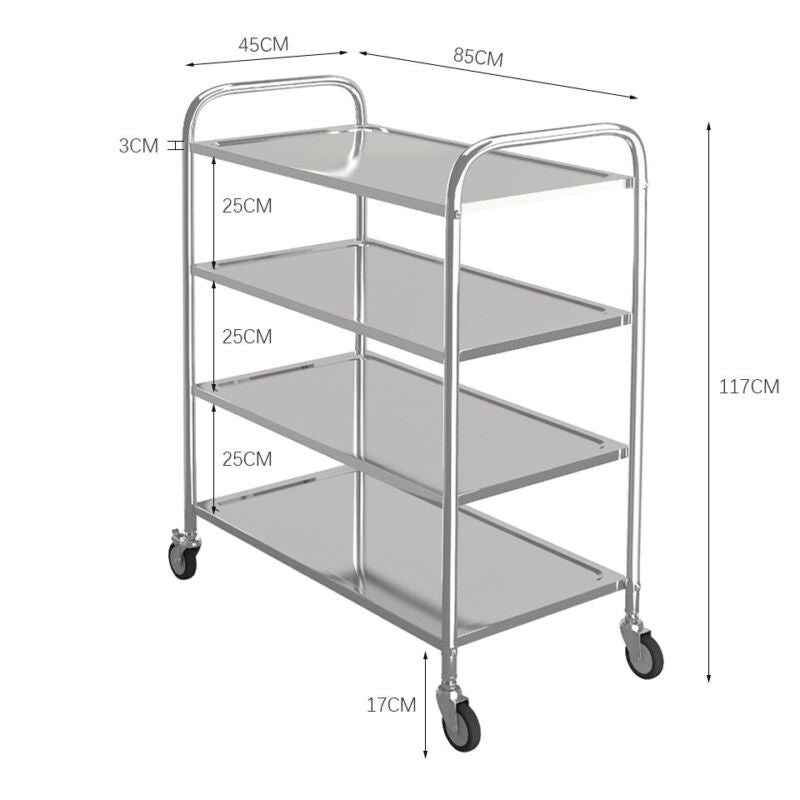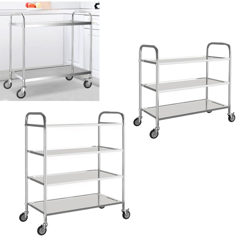 2-4 Tier Kitchen Trolley Cart Stainless Steel Catering Serving Rack Storage Unit