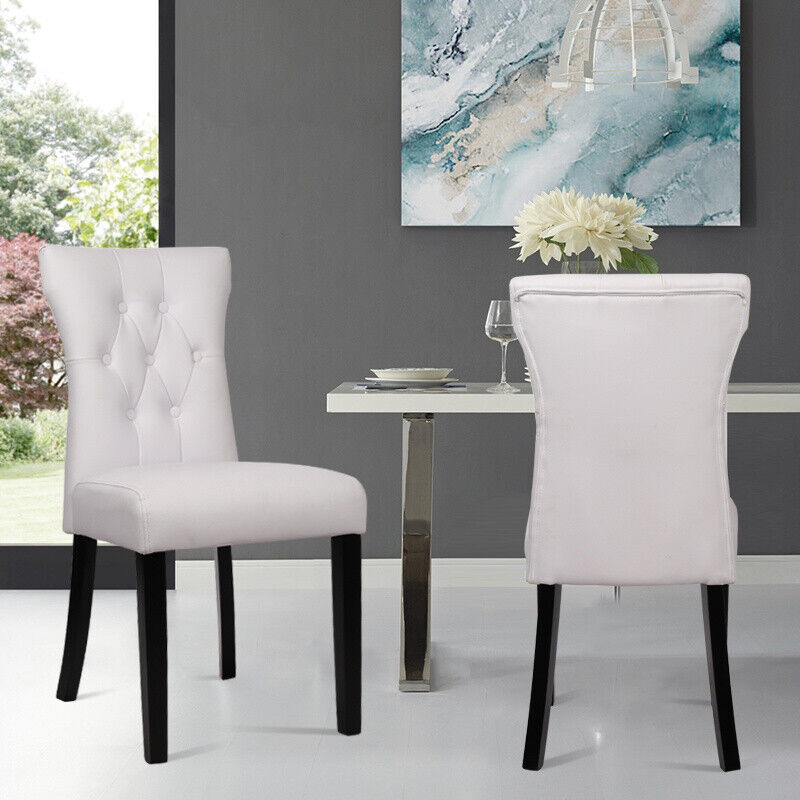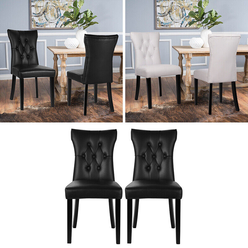 2/4 x Upholstered Velvet/PU Dining Chair Padded Seat Kitchen High Back Chair