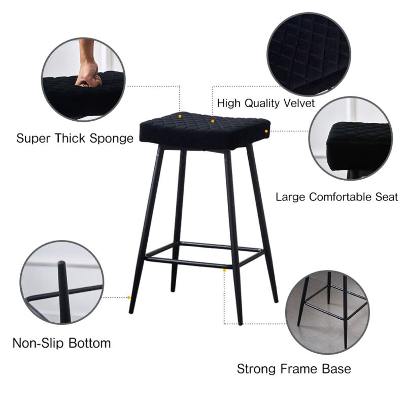 2/4PCS Bar Stools Breakfast Stool Kitchen Bar High Chairs Velvet Seat Metal Legs