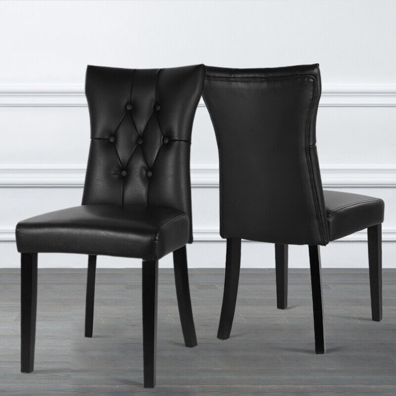 2/4pcs Black High Back PU Leather Dining Chairs Wooden Legs Buttoned Kitchen