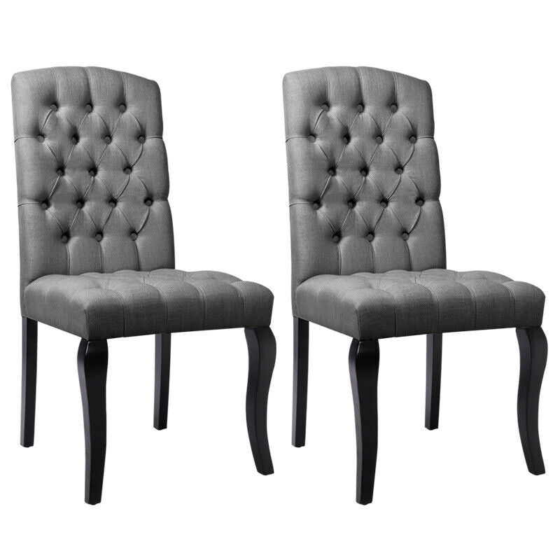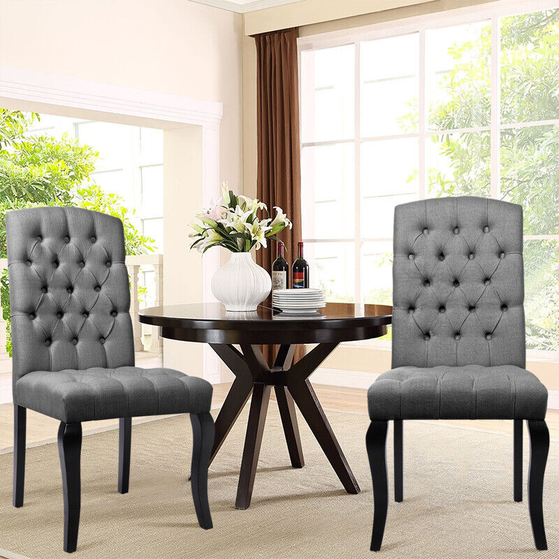 2/4pcs Chesterfield Dining Chairs High Back Fabric Padded Kitchen Dinner Seat