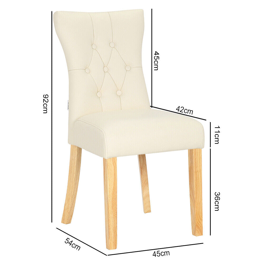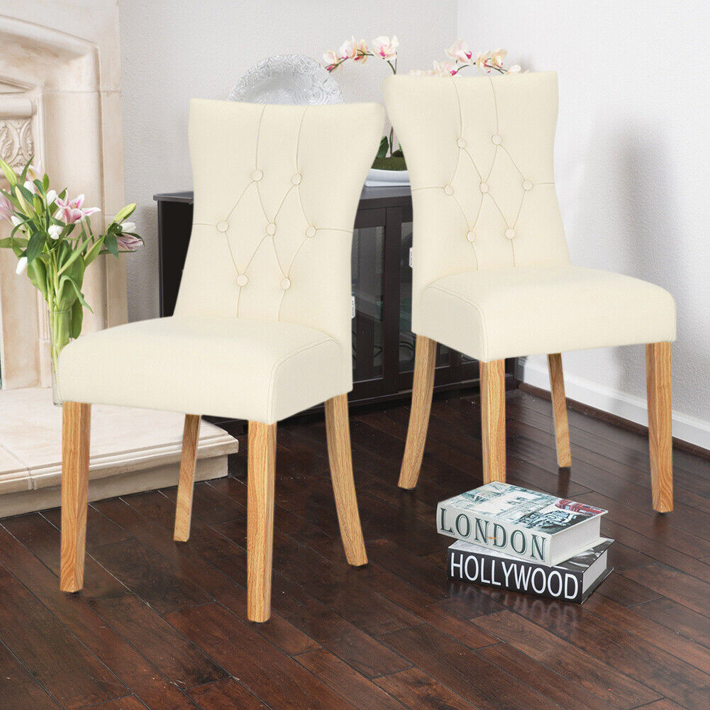 2/4pcs Cream Faux Leather Padded Dining Chairs Wooden Leg Kitchen Dinner Seat