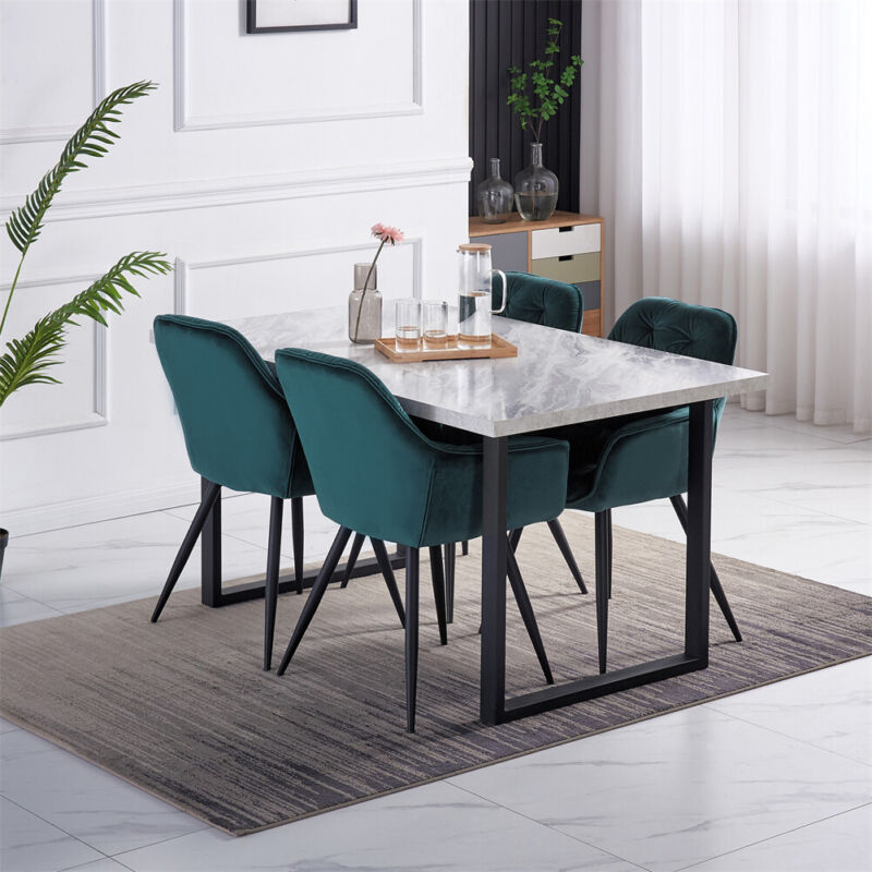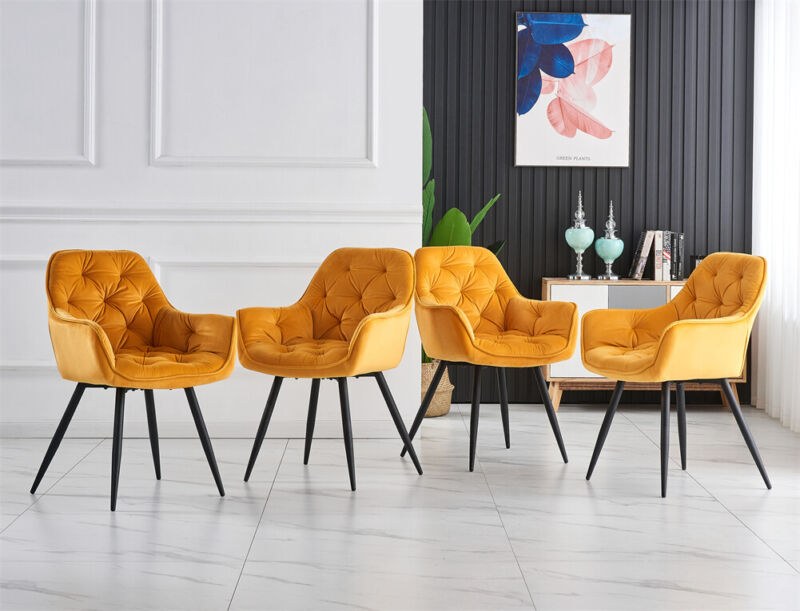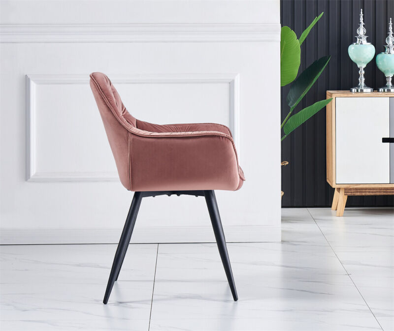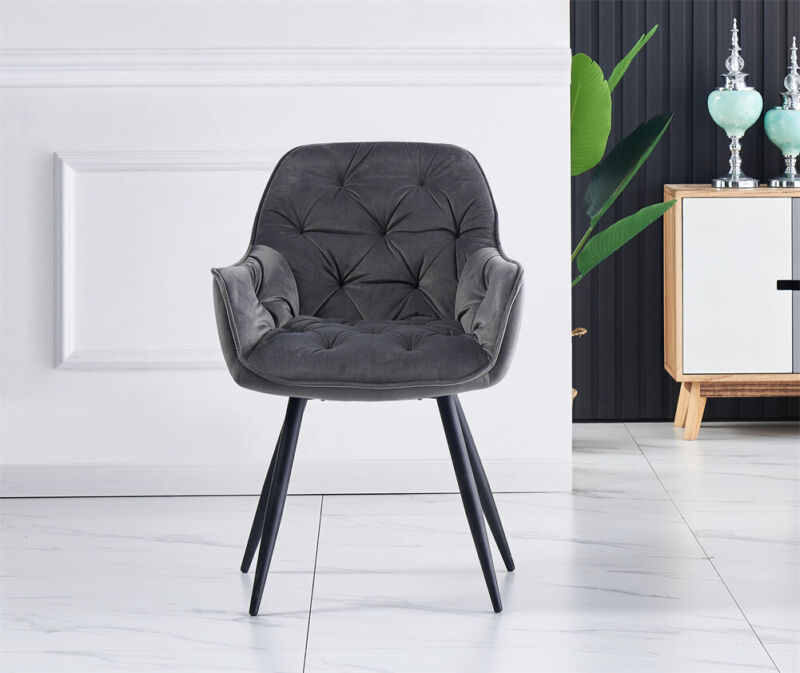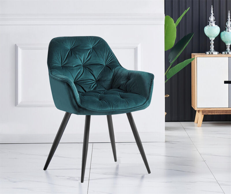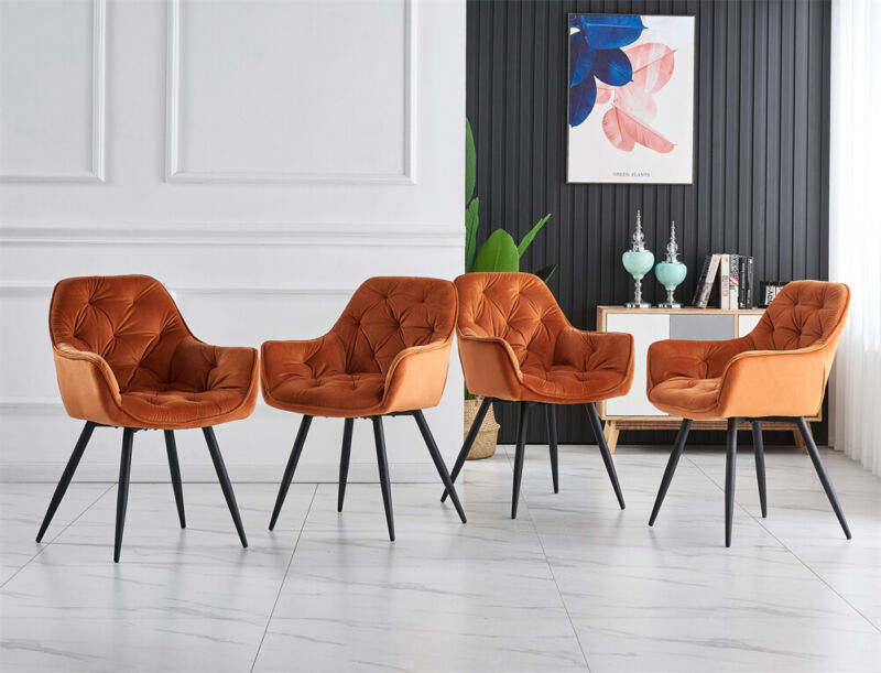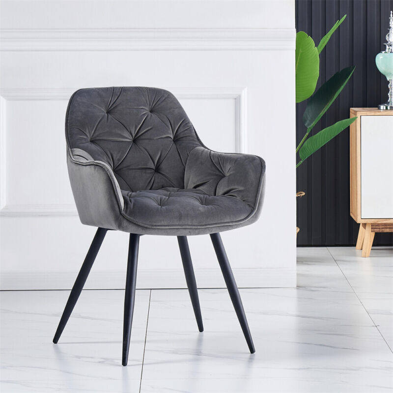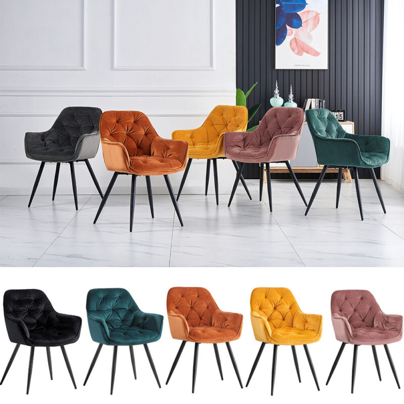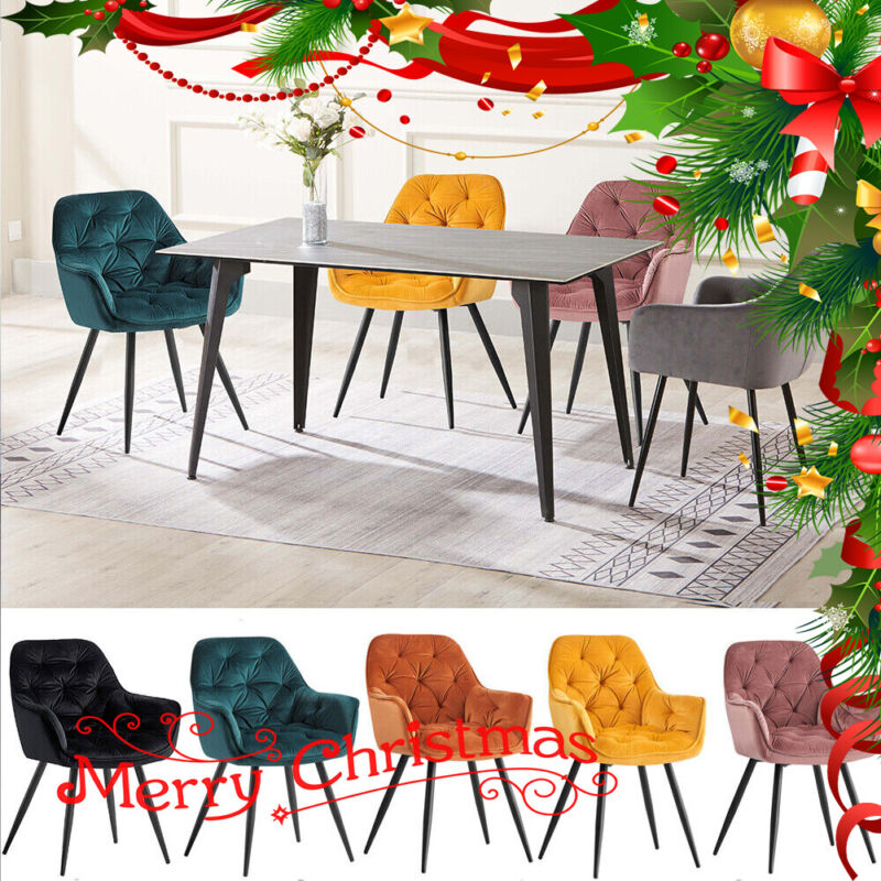 2/4PCS Dining Chairs Set Velvet Padded Seat Metal Leg Kitchen ArmChairs Office