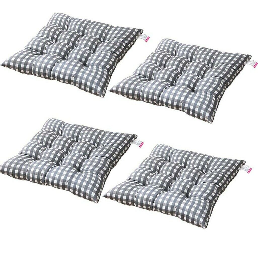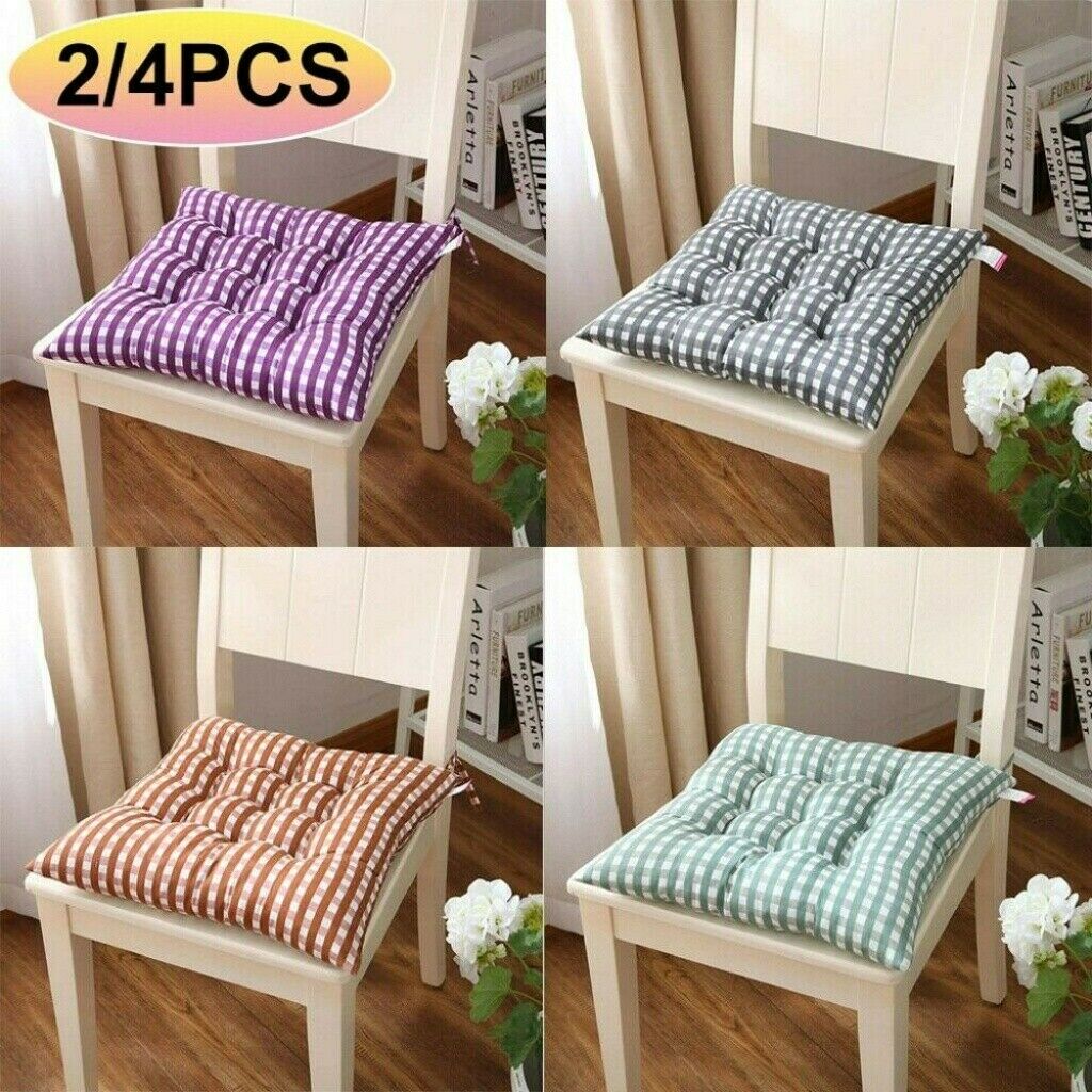 2/4PCS Seat Pad Dining Room Kitchen Garden Chair Cushions Tie On Flower Check UK