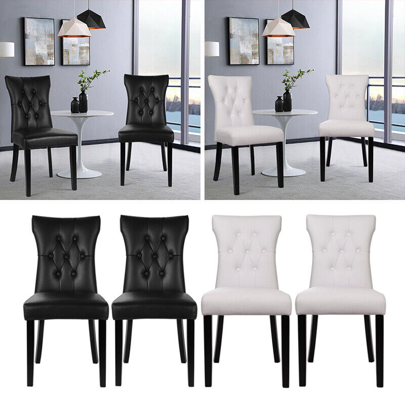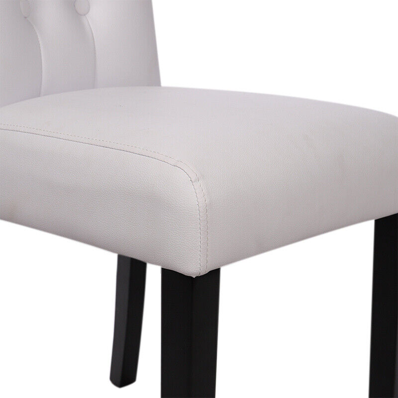 2/4Pcs Upholstered Cushioned Dining Chairs Faux Leather Padded Seat Wooden Legs