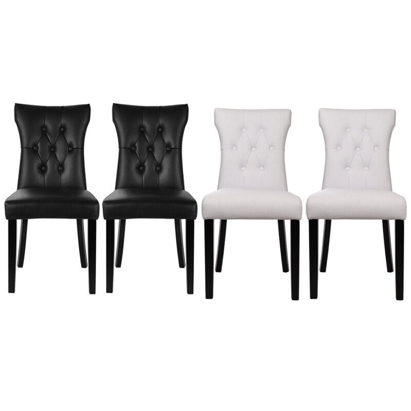 2/4x Dining Chairs w/ Sturdy Wood Legs Padded Seat High Back Side Kitchen Chairs