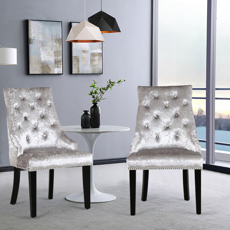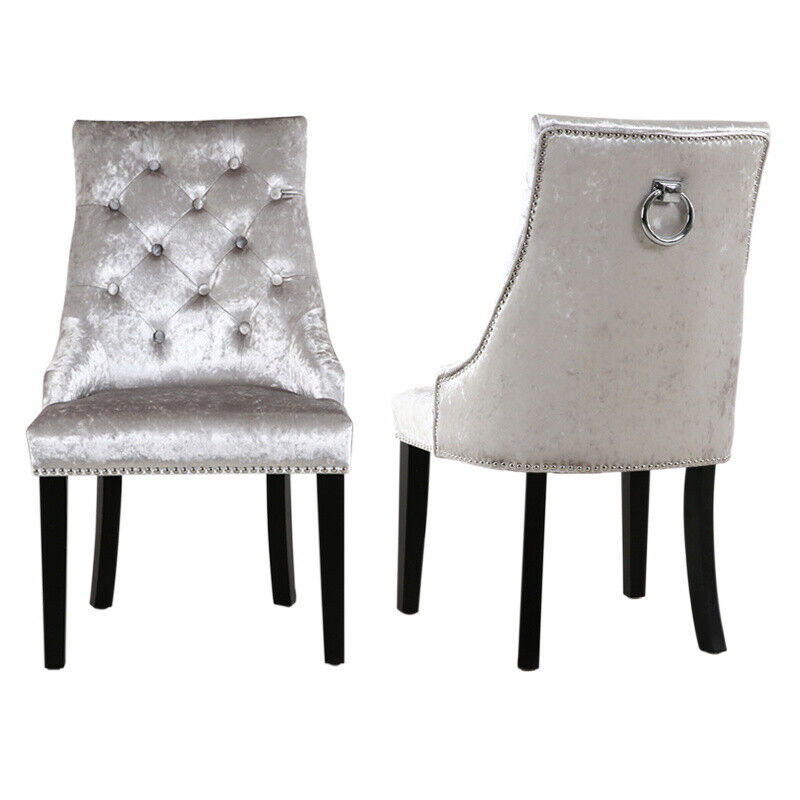 2/4x Ice Velvet Mink Upholstered Dining Room Chairs Knocker Back with Stud Chair