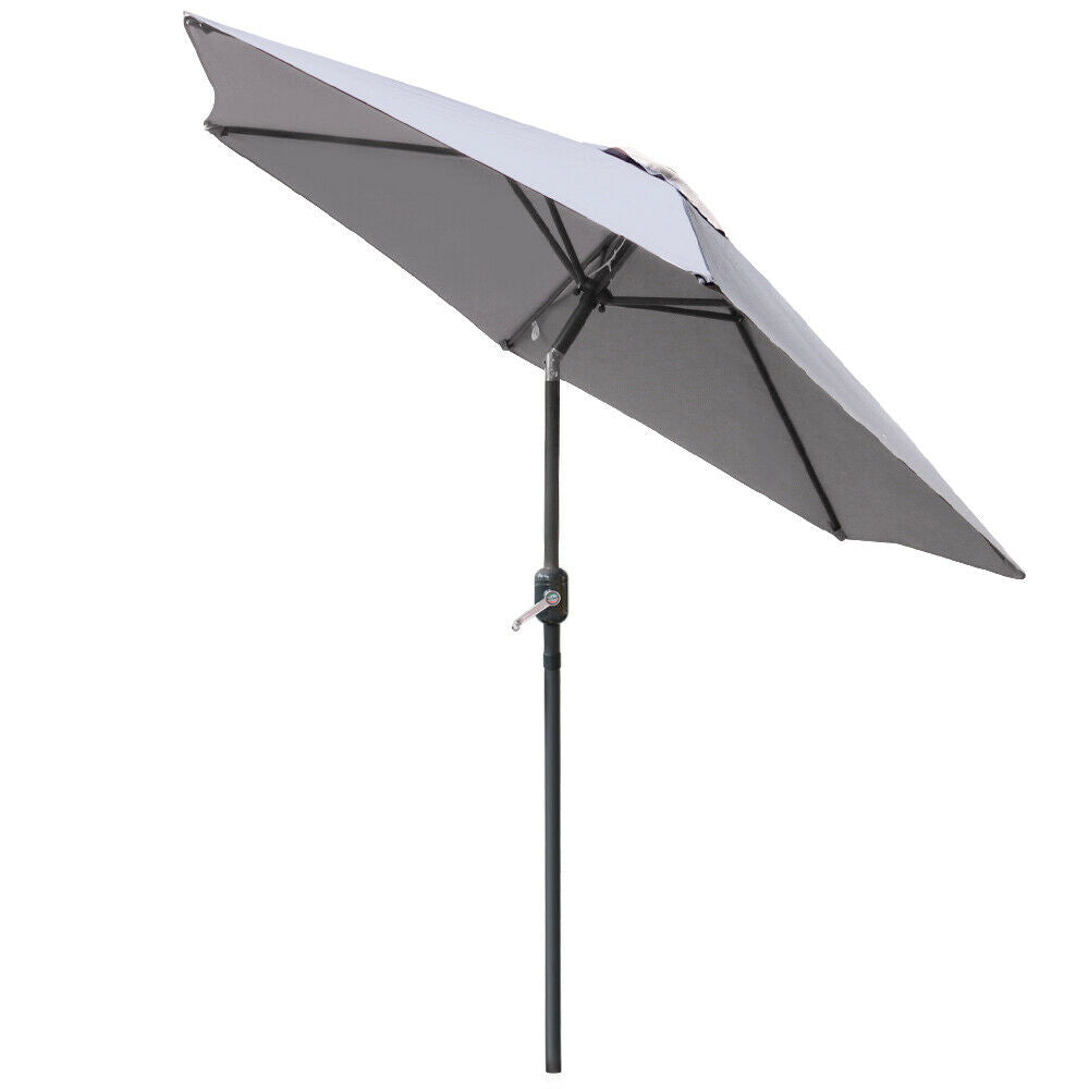 2.5M Outdoor Garden Parasol Patio Round Sun Shade Canopy Umbrella Crank Grey