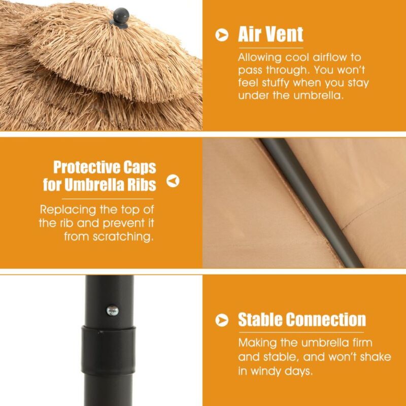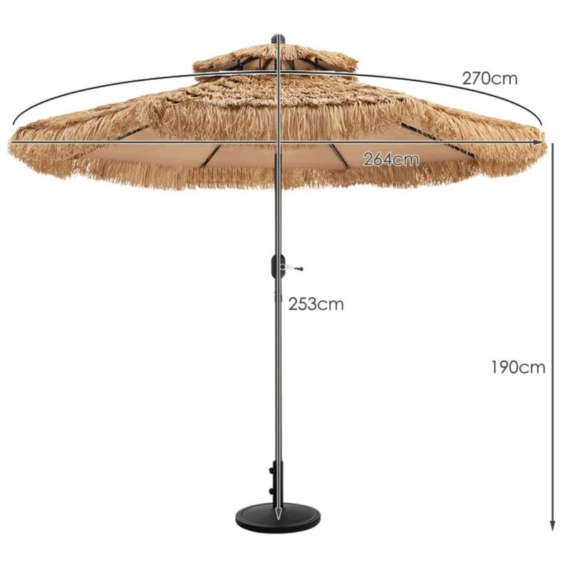 2.64M Thatched Tiki Umbrella 2 Tier Hawaiian Style Hula Patio Beach Parasol