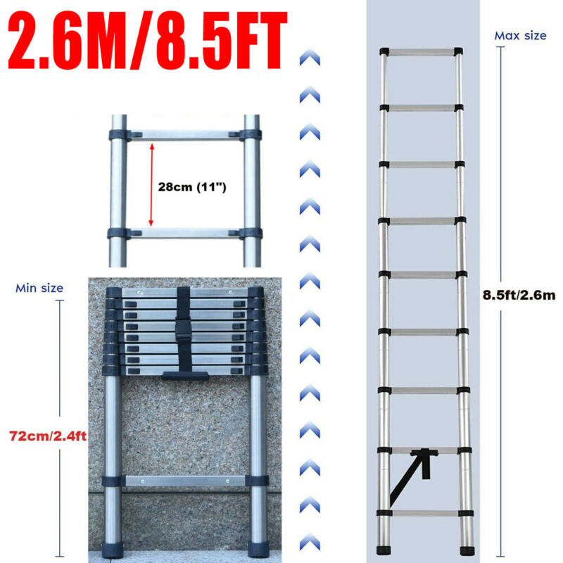 Condition: New: A brand-new, unused, unopened and undamaged item in original retail packaging (where packaging ... Colour: Silver Material: Stainless Steel Number of Steps: 9 Type: Extension Ladder Features: Foldable, Portable, Telescoping Brand: Da Load Capacity: 150kg Manufacturer Warranty: Lifetime Item Height: 2.6M Maximum Reach Height: 2.6M Model: Telescopic Extendable Ladders MPN: Does not apply Item Weight: About 7kg (15.5lbs) EAN: Does not apply