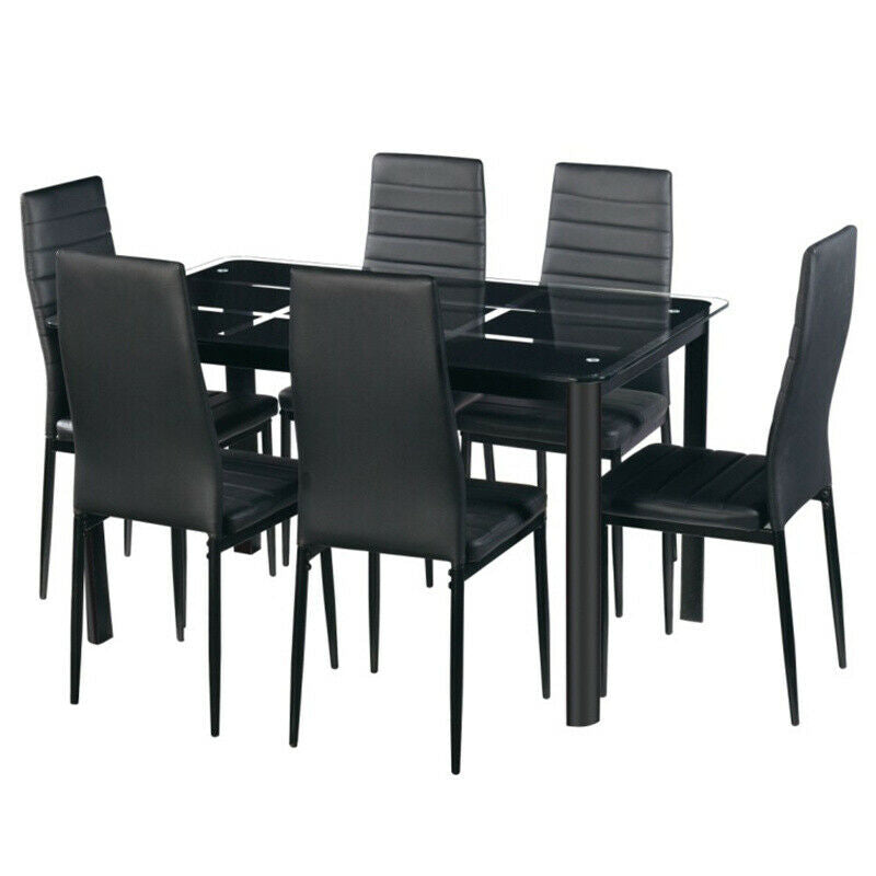 2-6PCS Faux Leather Dining Room Chair Modern High Back Metal Legs Table Chairs