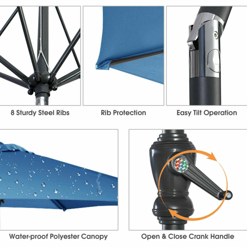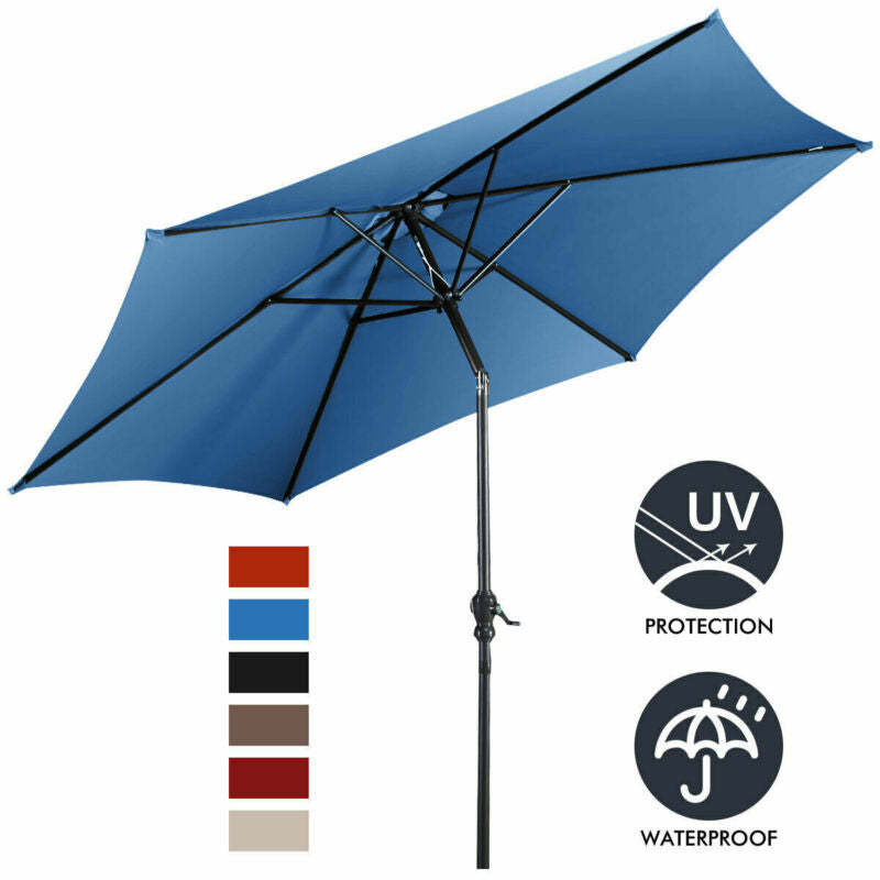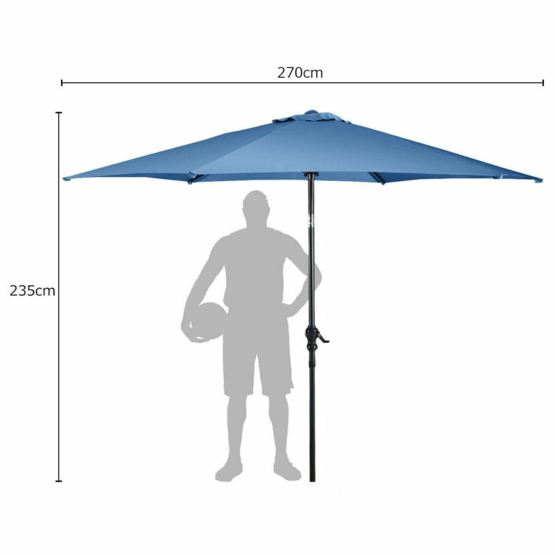 2.7 M Outdoor Patio Umbrella Garden Parasol Sun Shade Adjustable W/ Crank Handle