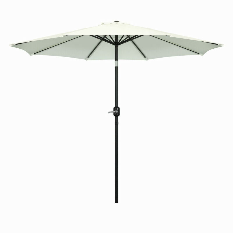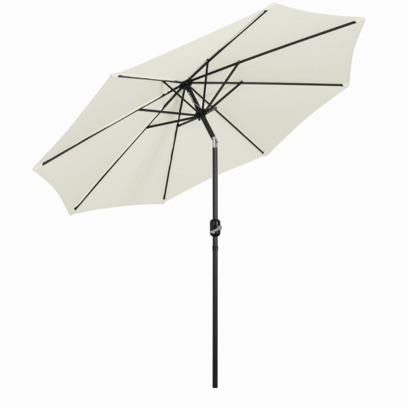 2.7 M Round Beige Garden Parasol Umbrella Sun Shade Outdoor Patio Crank Tilt