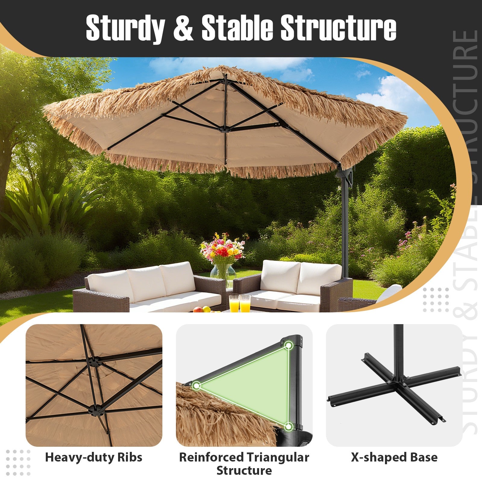 2.7m Cantilever Hula Tiki Thatch Patio Beach Umbrella w/ Vented Top