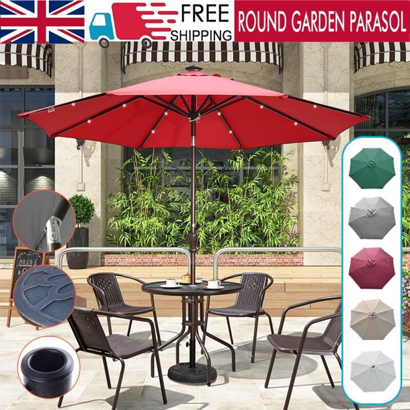 2.7M Garden Parasol Sun Umbrella Solar Powered Chain Light Tilt Crank 80PCS LED
