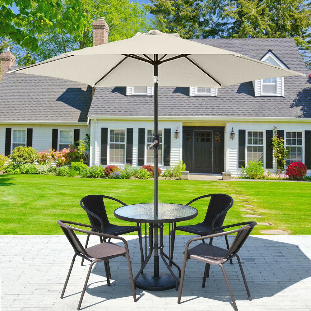 2.7m Garden Round Parasol Patio Sun Shade Umbrella Canopy With Crank Tilt Cream